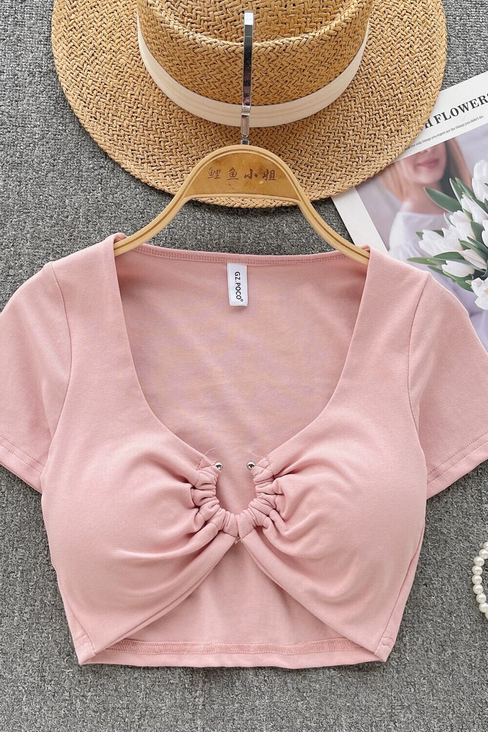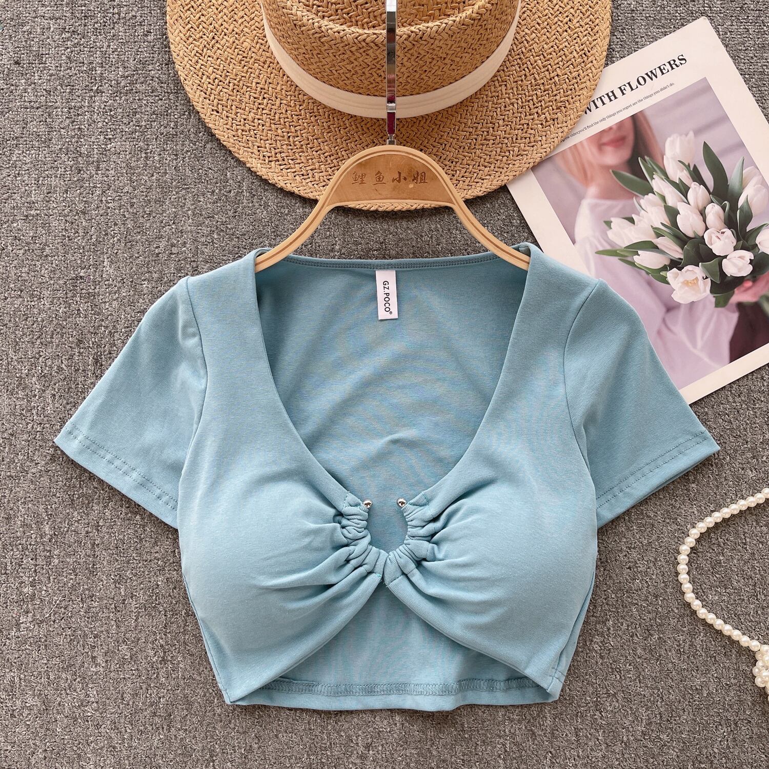 セクシーな純粋な欲望ネクタイカジュアル半袖 Tシャツ女性夏中空キンクデザインハイウエストへそ出しショートトップ サマー 夏物 ピュア lyxaj77281652739