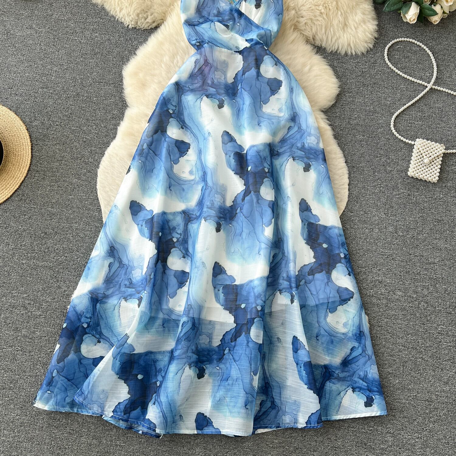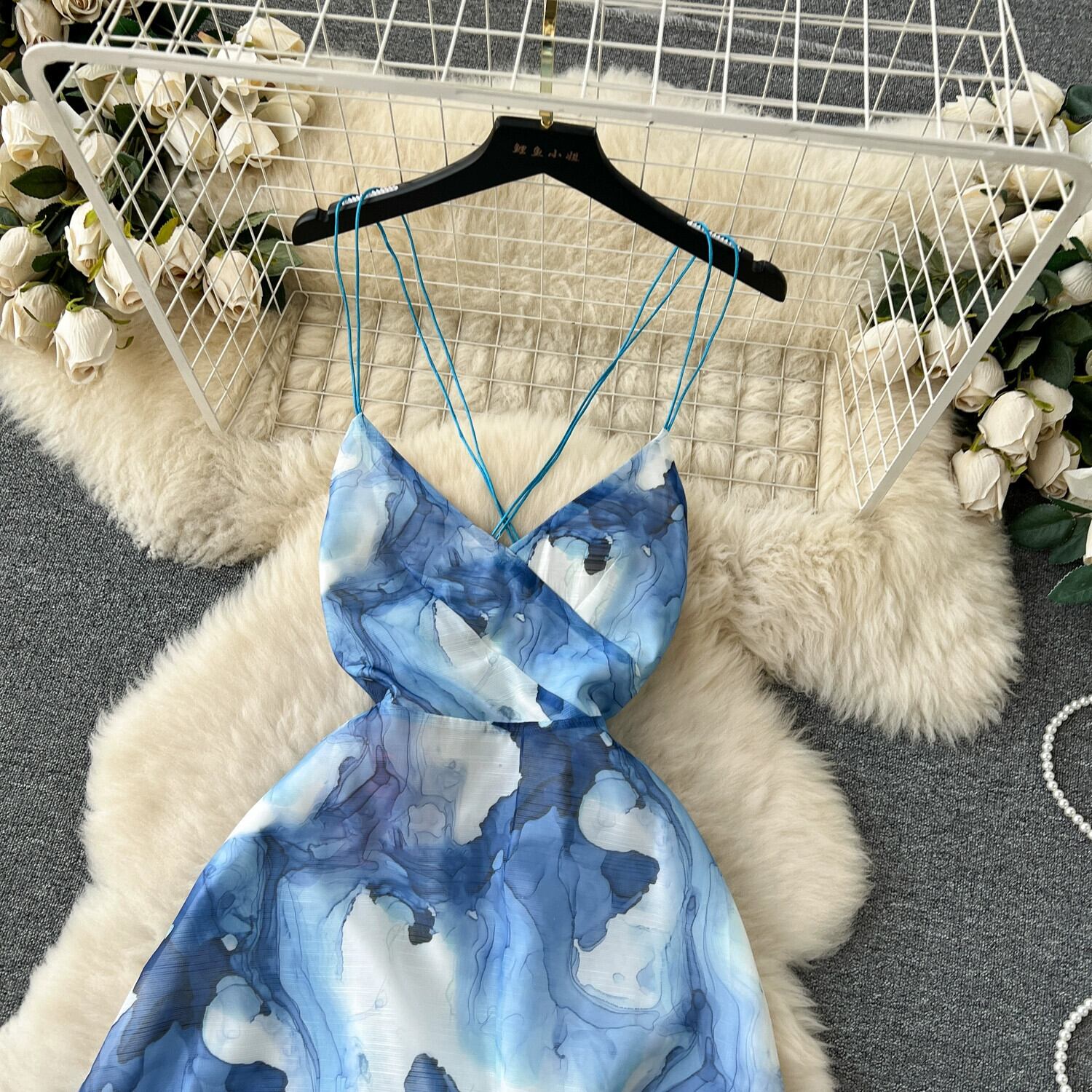 夏のインク汚れサスペンダードレス夏の新しいフレンチレトロライト成熟したロングスカート妖精キキョウ初恋波 サマー 夏物 lyxaj63007035709