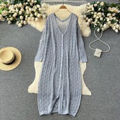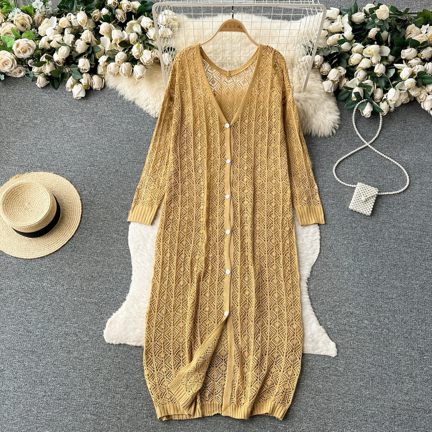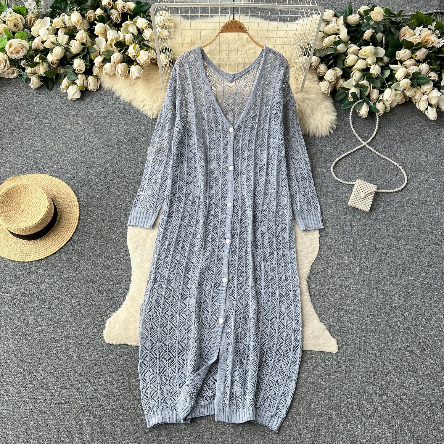 シックなフレンチニッチレトロ中空かぎ針編みニット長袖カーディガンジャケットレディースカジュアルルーズ空調シャツ ロング lyxaj13819138050