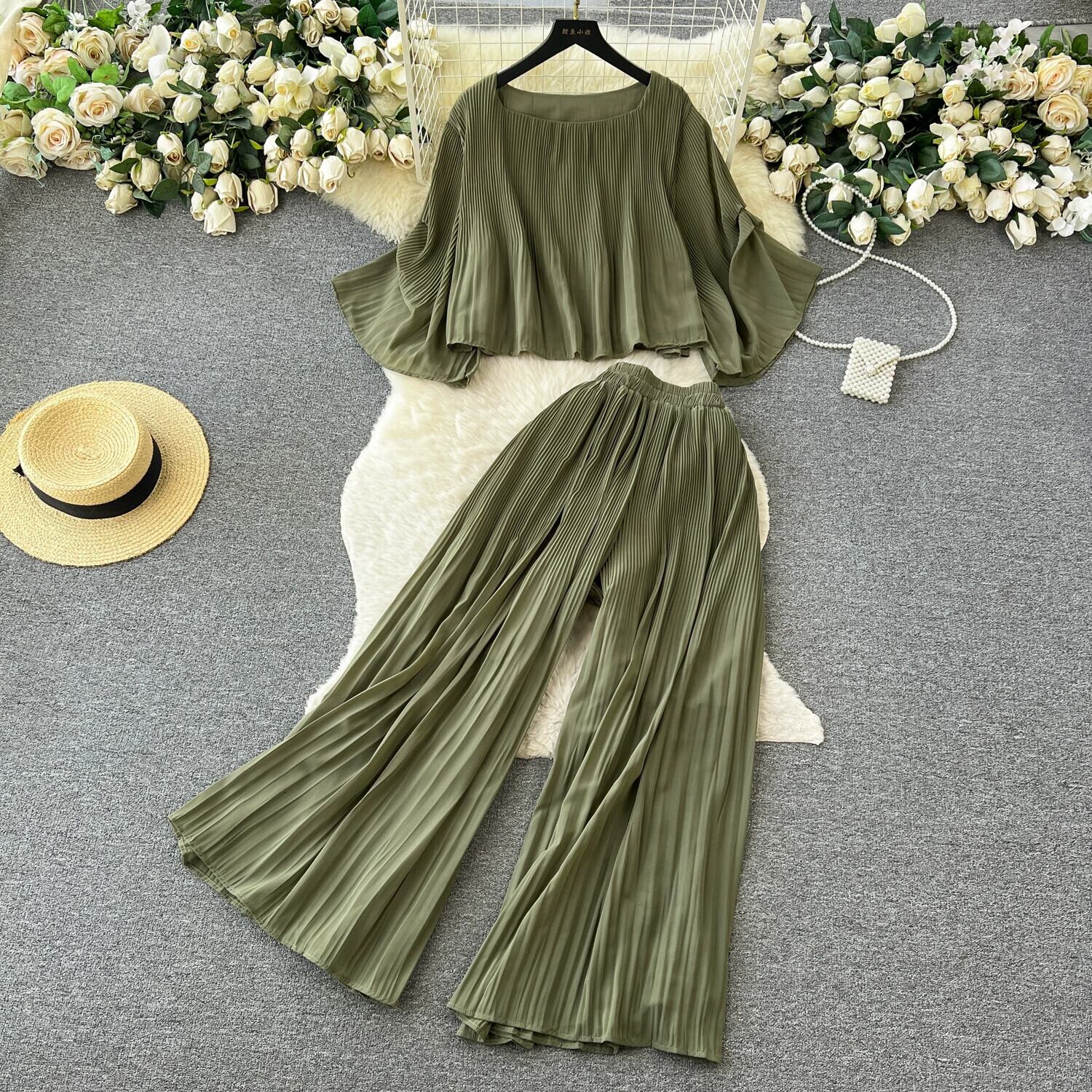 レトロヘボンスタイルロイヤルハイエンドファッションスーツ女性の夏のルーズショート Tシャツ + ハイウエストロングパンツ サマー 夏物 lyxaj5017079406