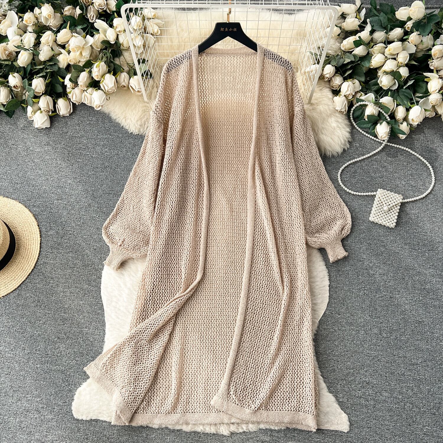 夏の新スタイル怠惰なスタイル無地ニット中空デザインルーズミッドレングスコート女性の薄い日焼け防止カーディガン サマー 夏物 ソリッドカラー lyxaj28455551932