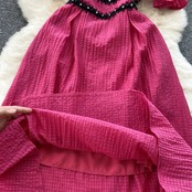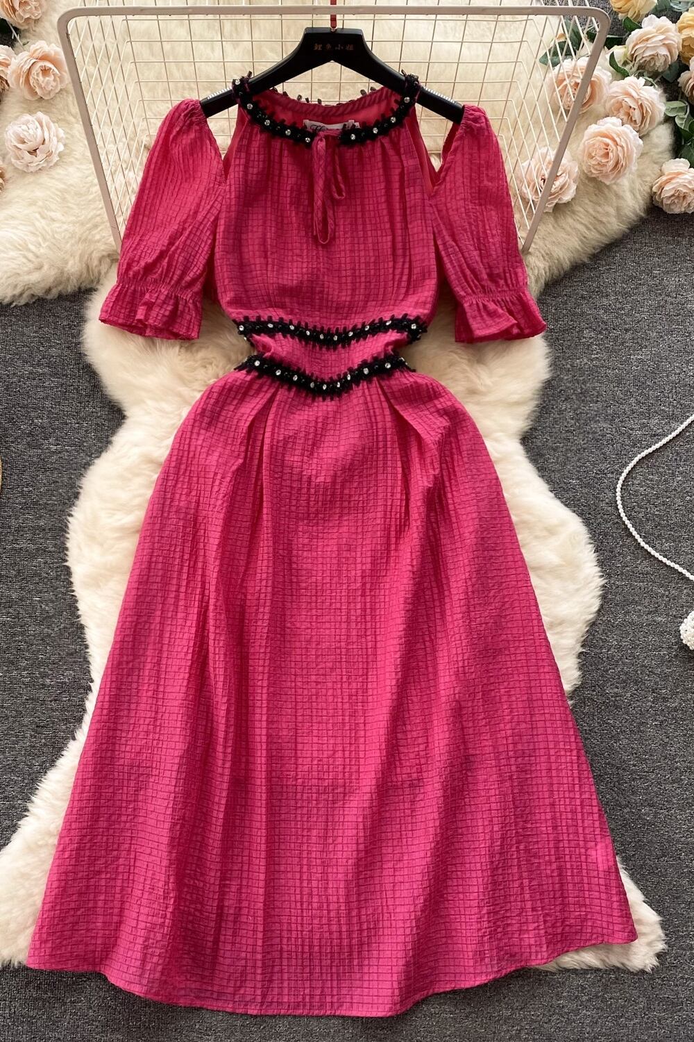 フレンチニッチデザインのオフショルダーパフスリーブビーズドレス女性、スリムウエストとエストスタイルのフェアリードレス lyxaj44142766678