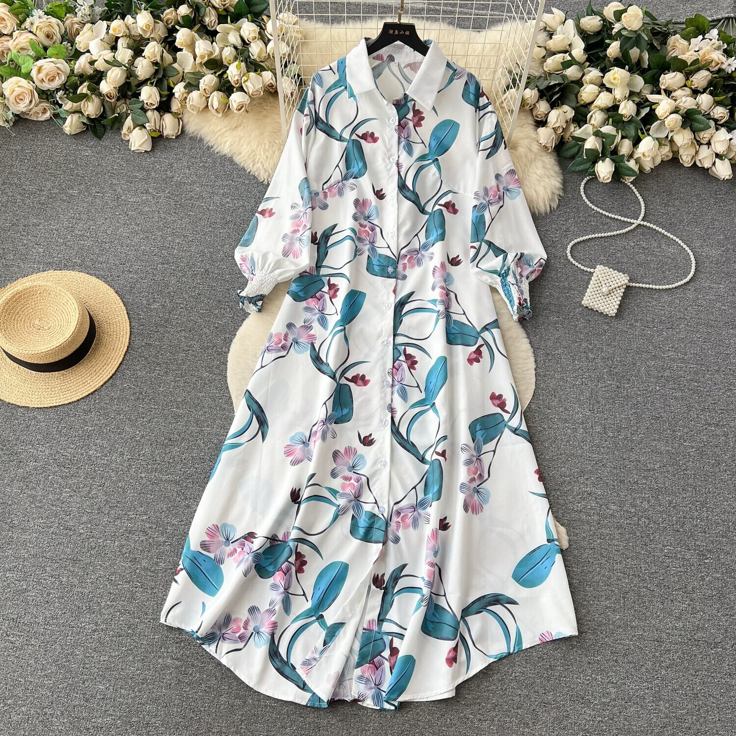 ヨーロッパとアメリカのスタイルの秋のプリントシャツドレスの女性、ポロカラー、ハイエンド、ルーズ、痩身、気質、大きな裾のスカート オータム 秋物 ヨーロピアン lyxaj37430823970