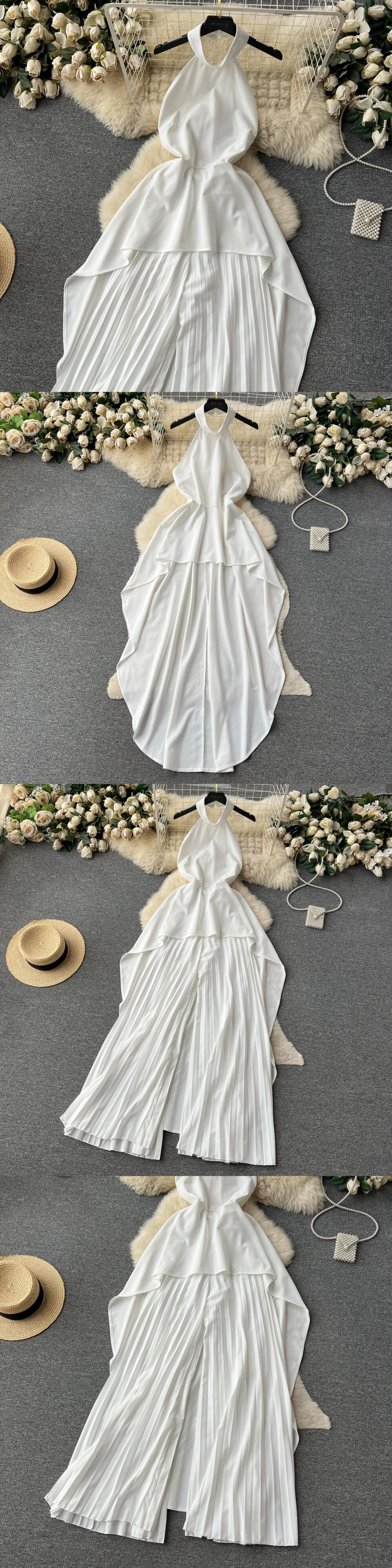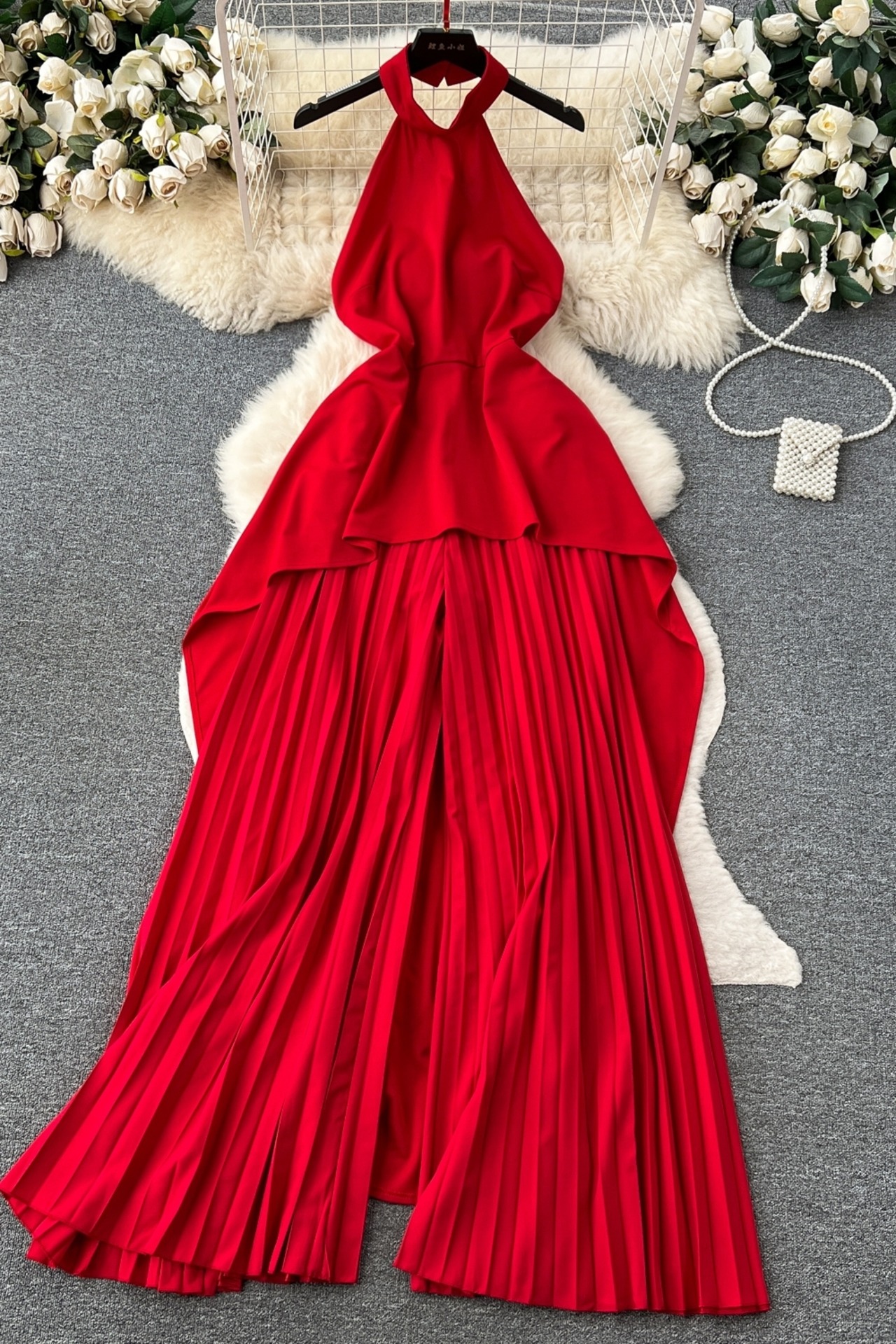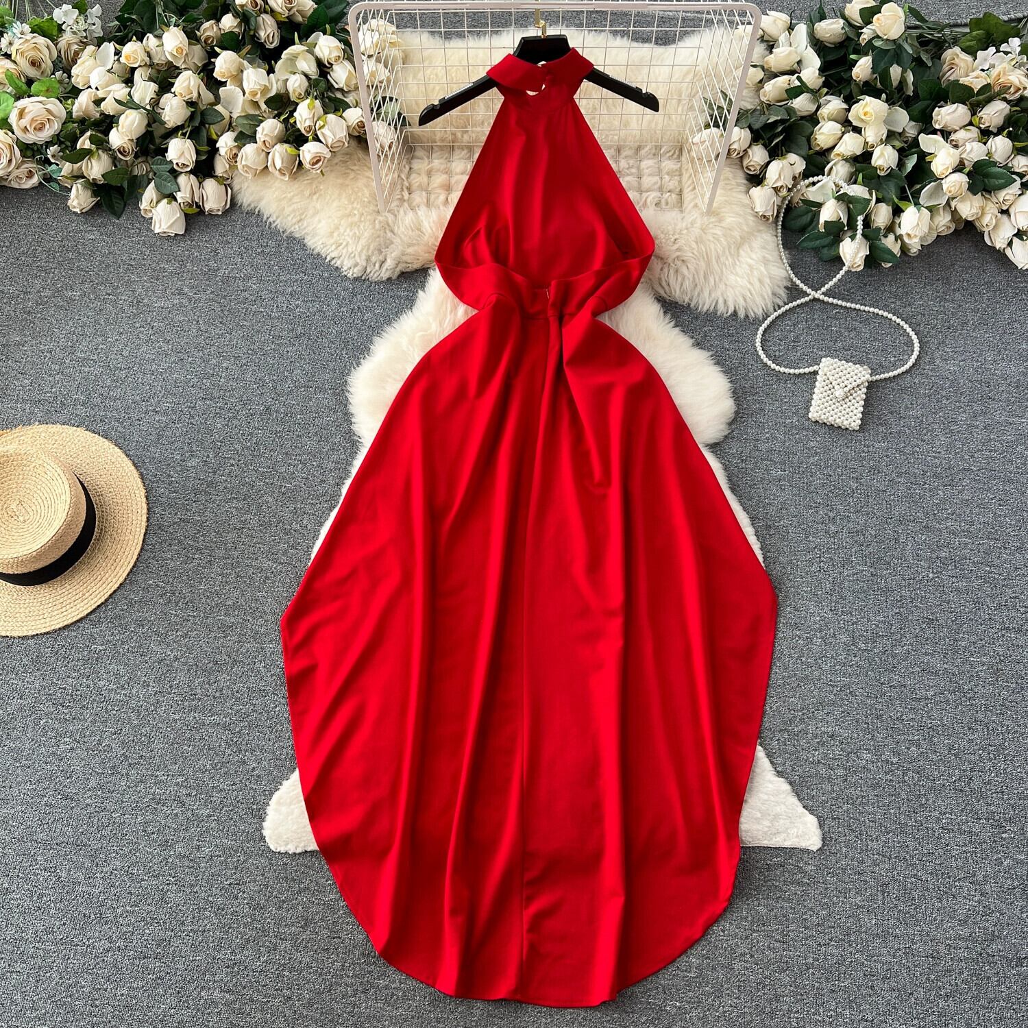 ヨーロッパとアメリカのスタイルのロイヤルシスターファッションスーツの女性の夏のホルターネックノースリーブバックレスフロアレングススカート + ゆったりとした吊りズボン サマー 夏物 ヨーロピアン lyxaj1554543709