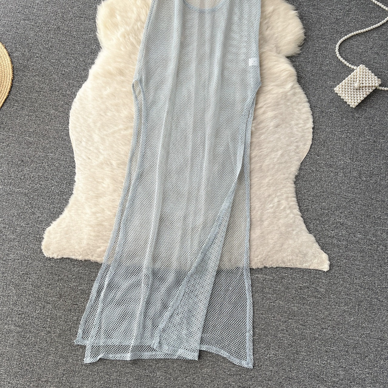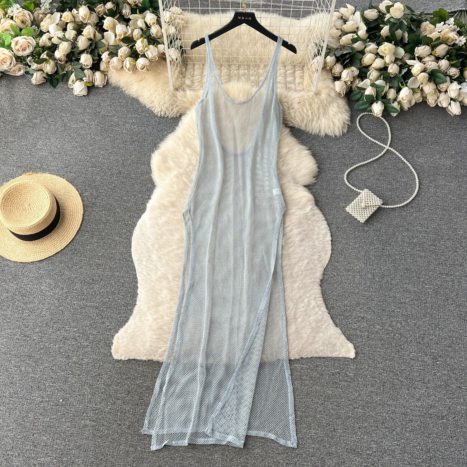 フランスの高級メッシュサスペンダードレス女性夏、中空スリットデザイン、スリムフィット、美しい純粋な欲望のロングスカート サマー 夏物 ピュア lyxaj60653170350