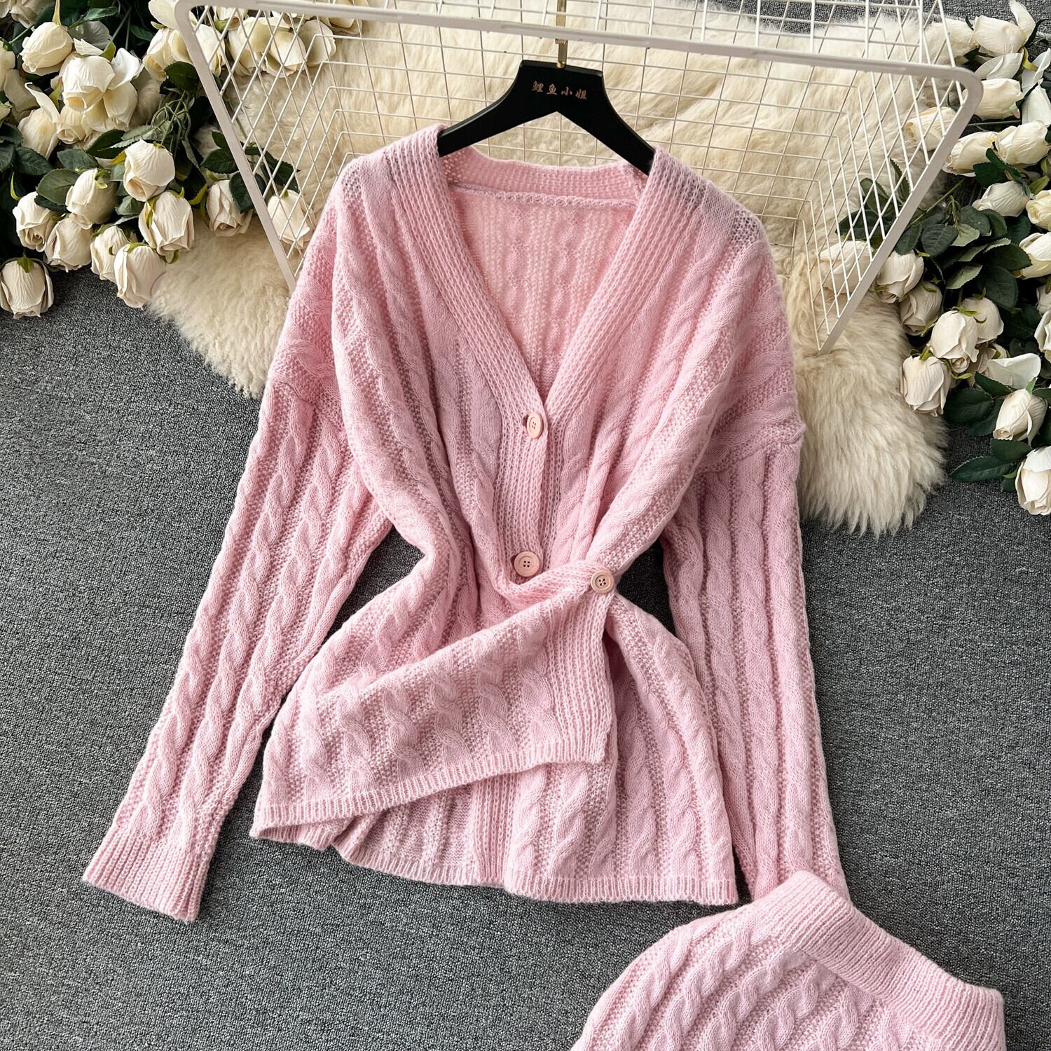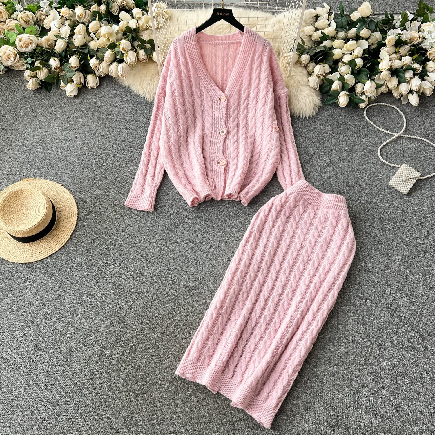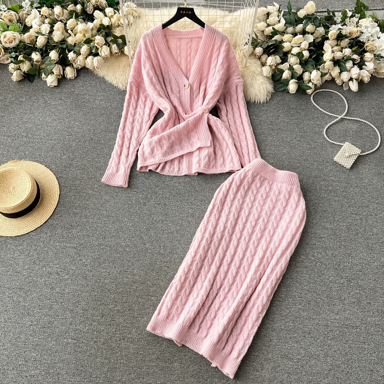 秋冬シックな甘く優しいツイストニットセータージャケット女性ハイウエストとヒップスリットスカートスーツ ハイウェスト 大人ガーリー スウィート キュート カジュアル オータム 秋物 ウィンター 冬物 lyxaj52819695953