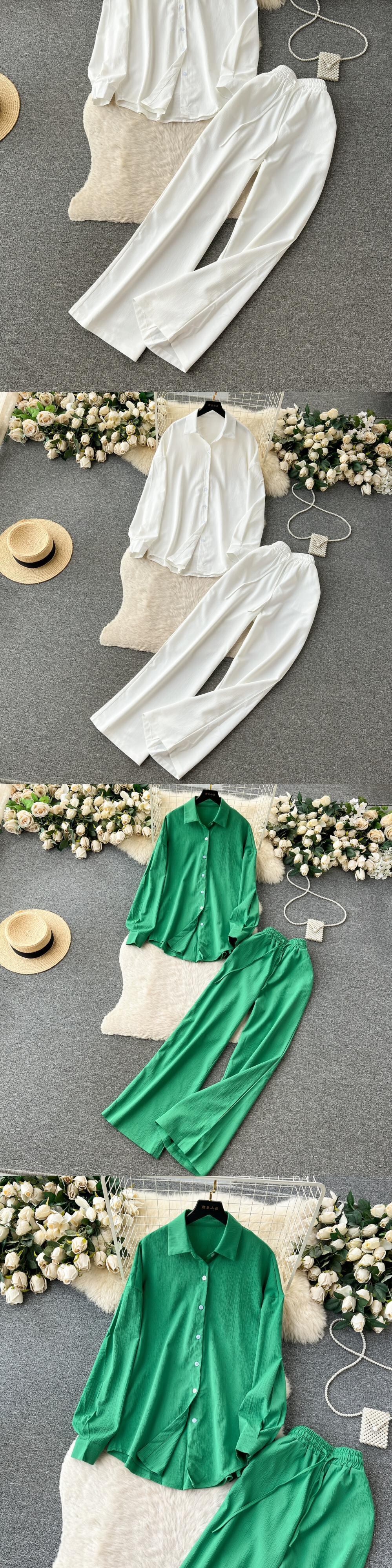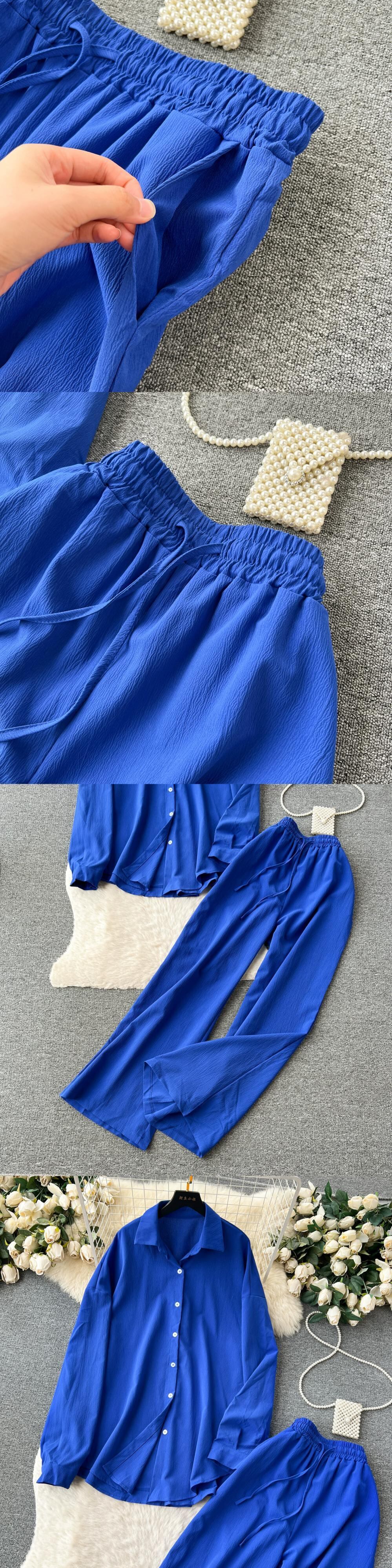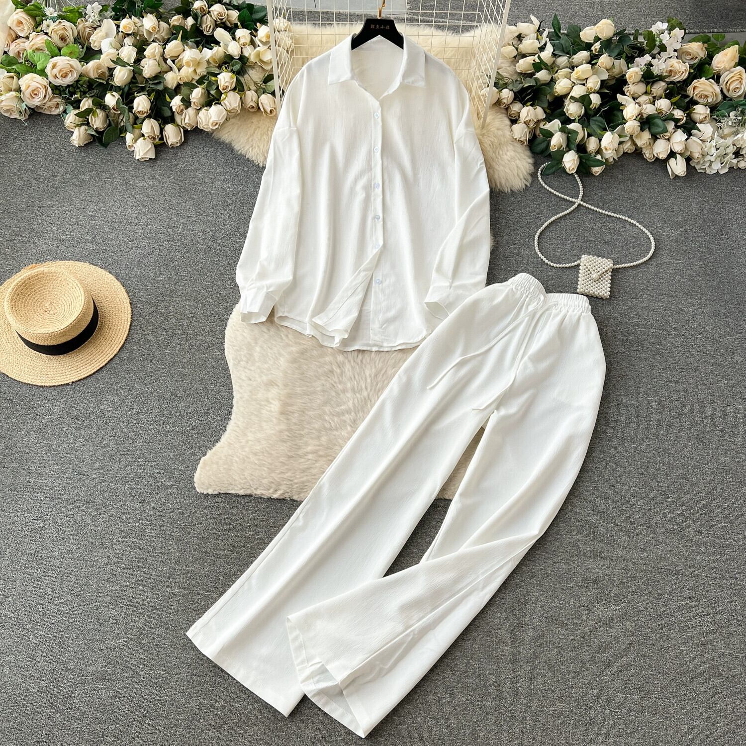 スーツ女性、ヨーロッパとアメリカンスタイルのカジュアルなルーズ長袖シングルブレストシャツ+ハイウエスト痩身ワイドレッグストレートパンツ ロング ヨーロピアン lyxaj90296241232