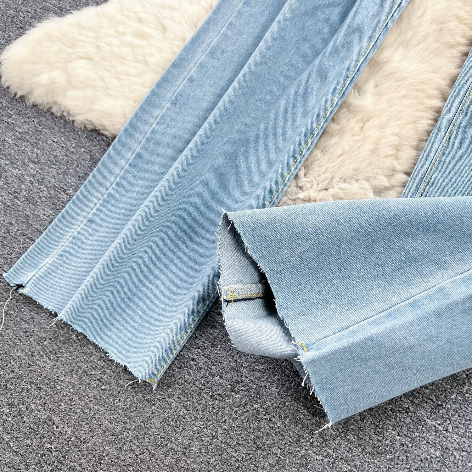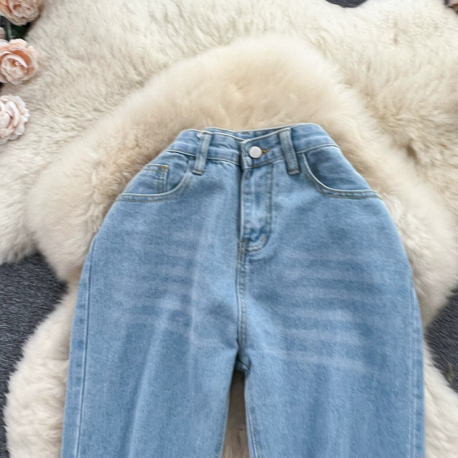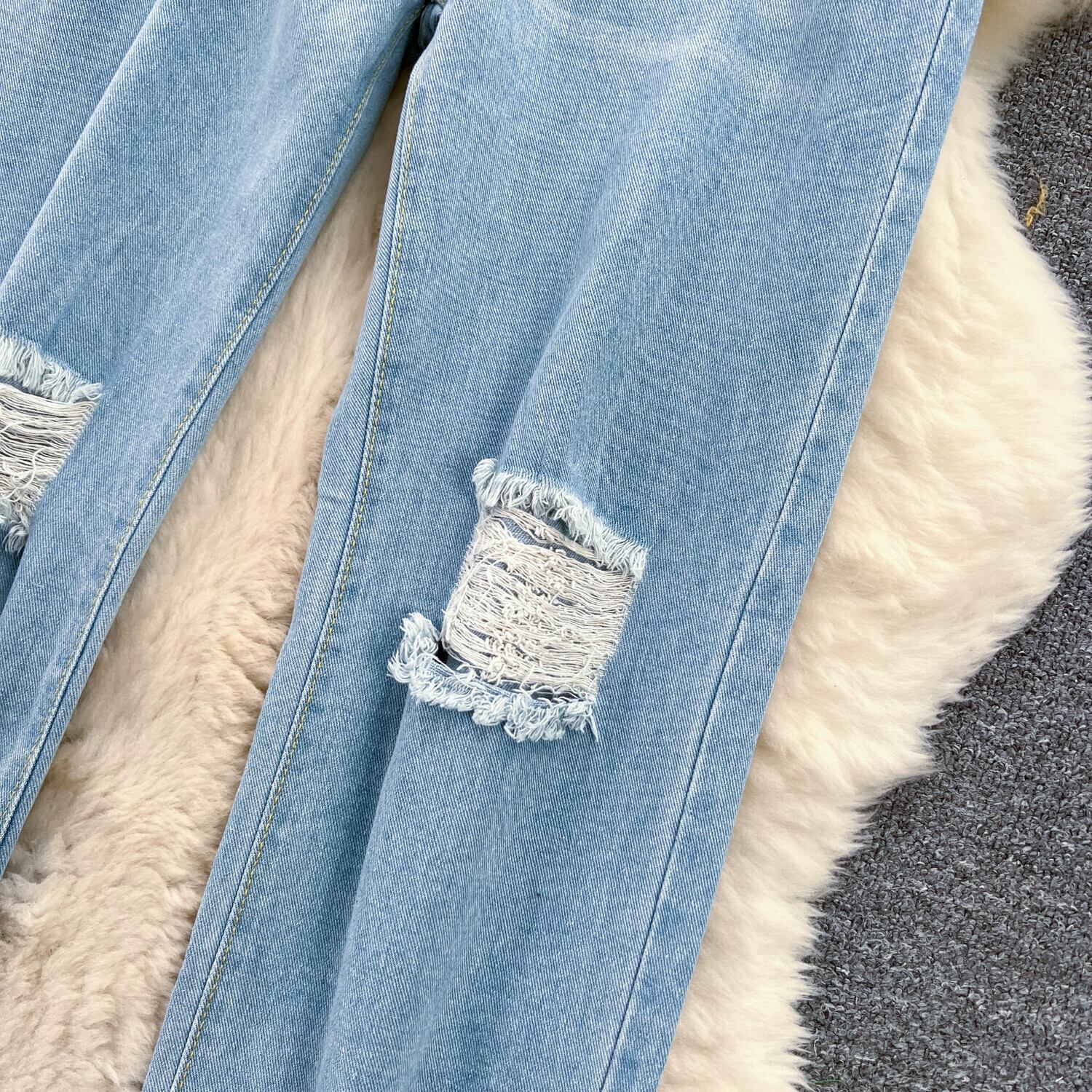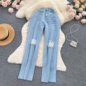 ファッションリッピングジーンズ女性アメリカンニッチレトロデザインルーズで多用途なワイドレッグストレートフロアモップパンツ ワイドパンツ lyxaj59027894562