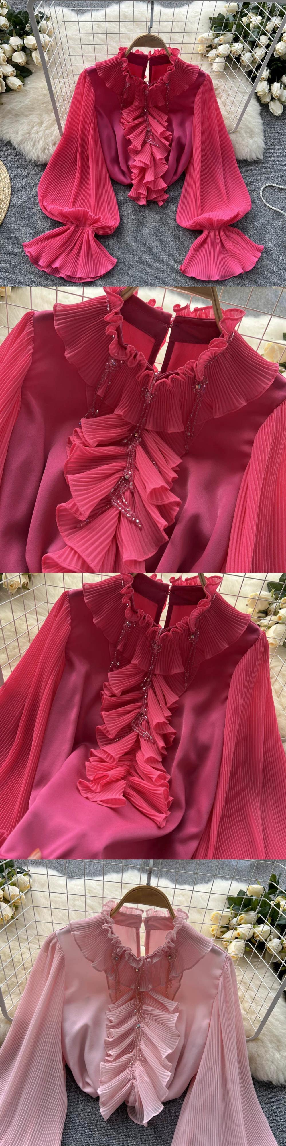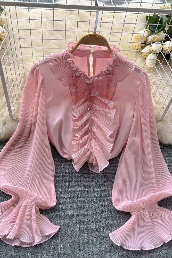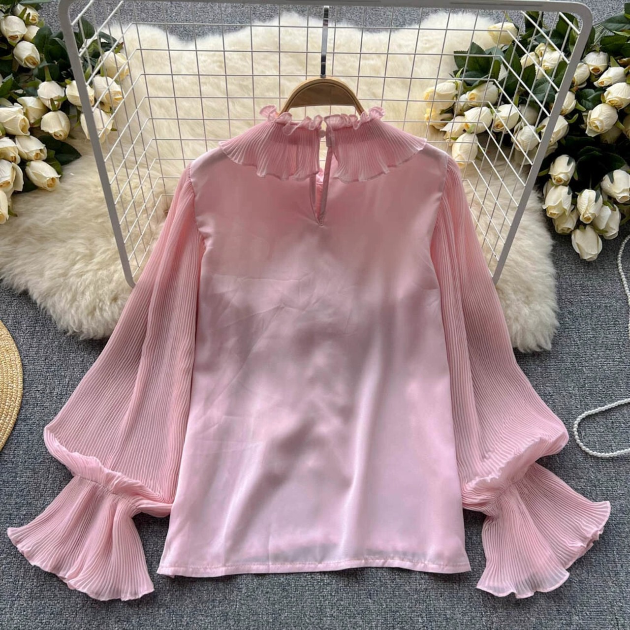 秋のフレンチニッチシフォンシャツ女性のデザインフリルパフスリーブスーパーフェアリースイートシャツトップファッション 大人ガーリー スウィート キュート カジュアル オータム 秋物 lyxaj5127783095