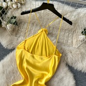 フランスの純粋な欲望スタイル三次元フラワーホルタードレス女性の夏のセクシーな背中の開いたウエスト痩身サテンロングドレス サマー 夏物 ピュア フラワーデザイン lyxaj44158770413