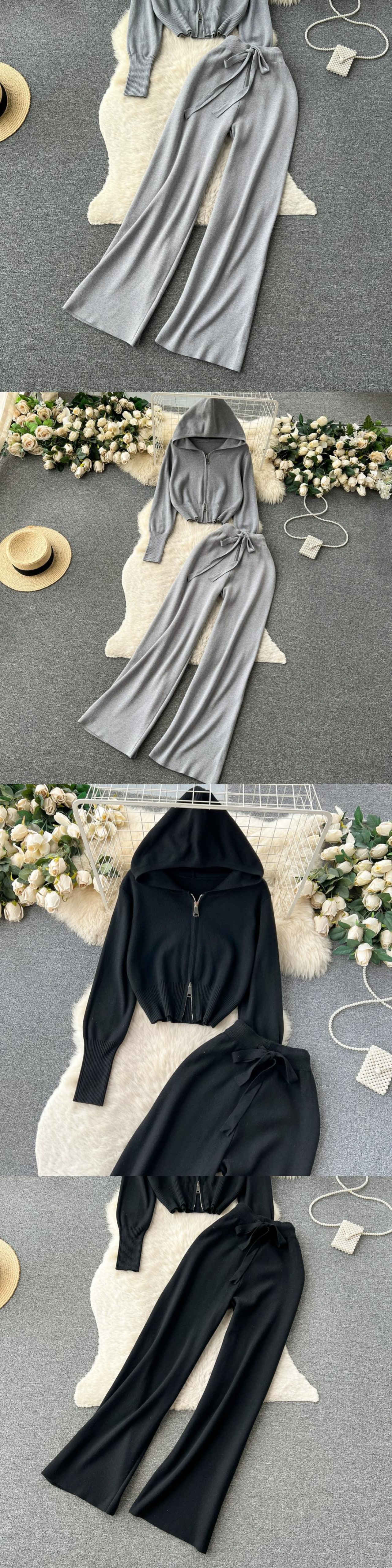 スポーツセーター2点セットレディース秋冬、多用途フード付きセータージャケット、レースアップウエスト、ワイドレッグロングパンツ オータム 秋物 ウィンター 冬物 lyxaj53909777408