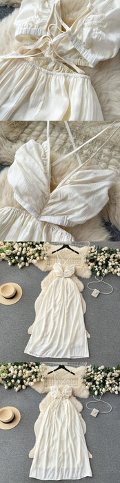 ドーパミン純粋な欲望ホットガールスタイルサスペンダードレス女性の夏の背中の開いたニッチ美しいスーパー妖精ロングスカート サマー 夏物 ピュア lyxaj66749112546