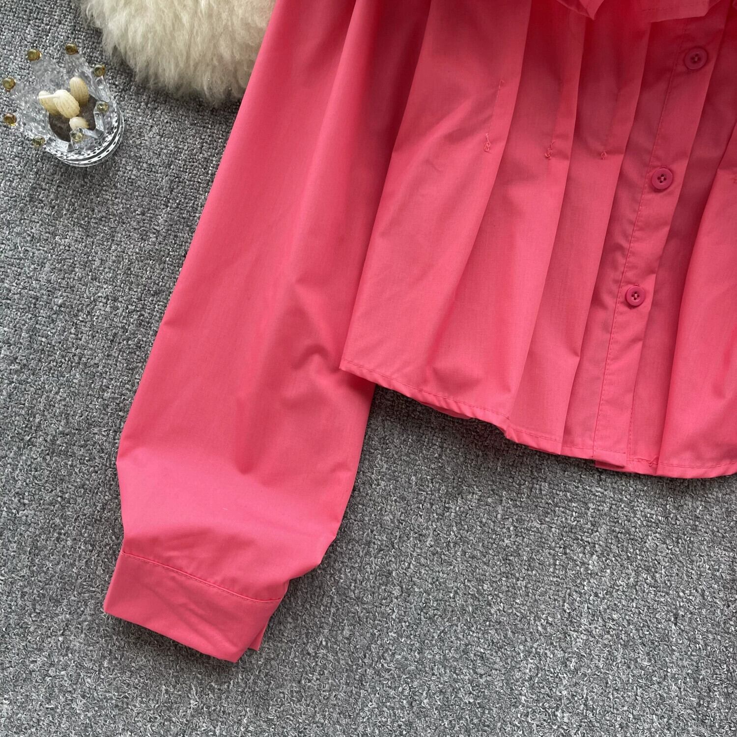 フランスのワンショルダー立体フラワースプライシング長袖シャツ秋の女性、ファッショナブルで多用途、スリムでハイエンドのショートトップ ロング オータム 秋物 フラワーデザイン lyxaj16470178997