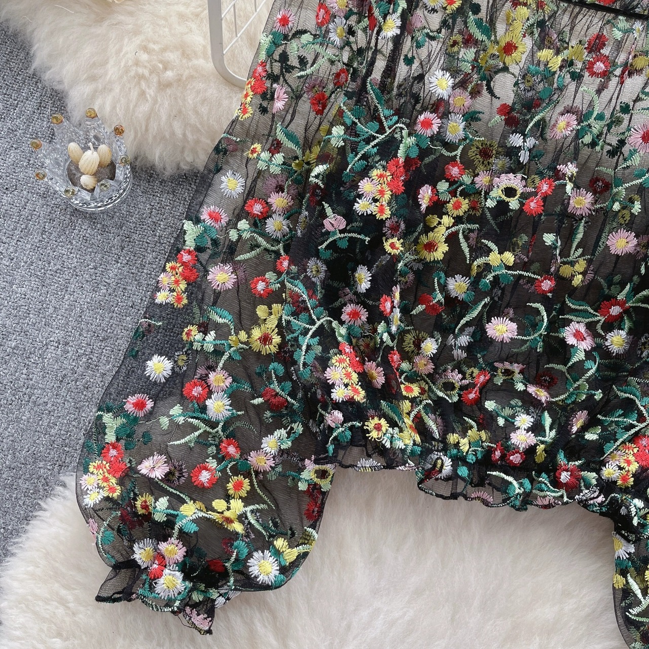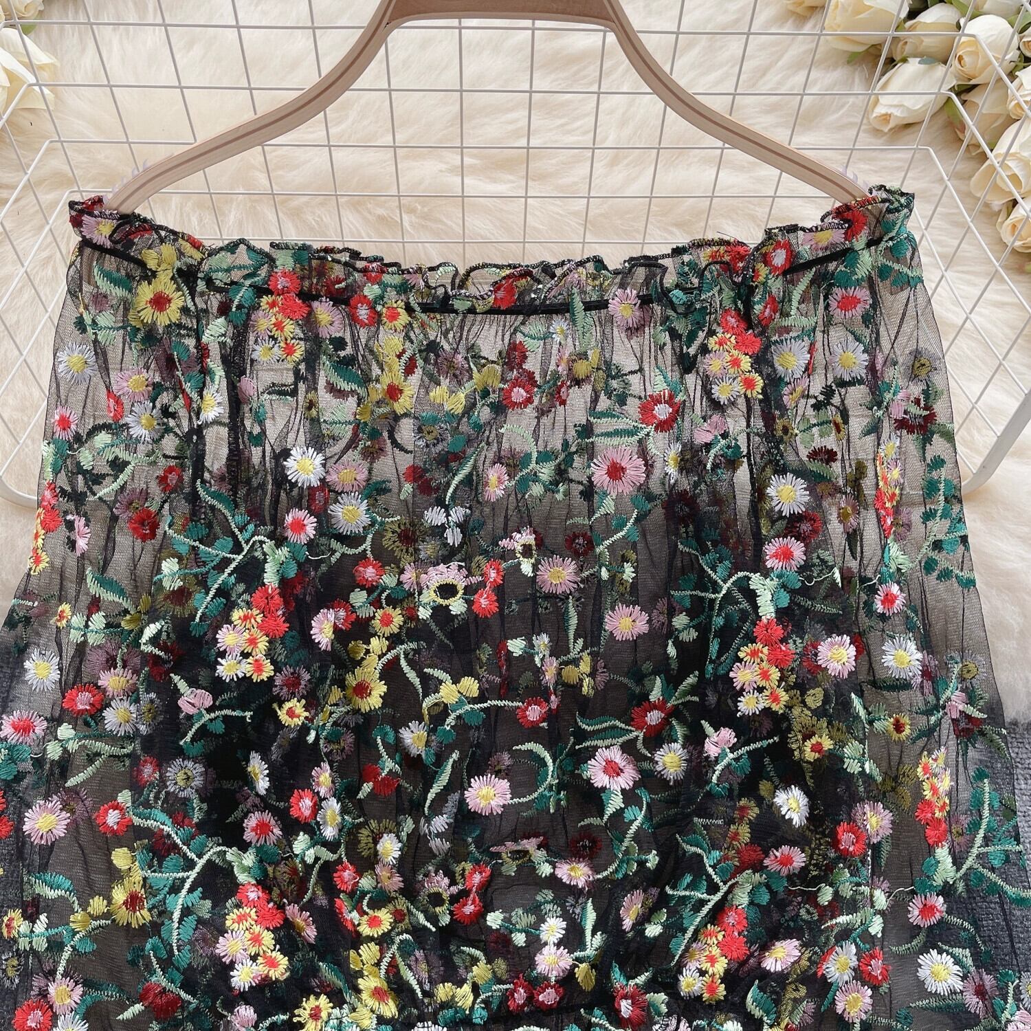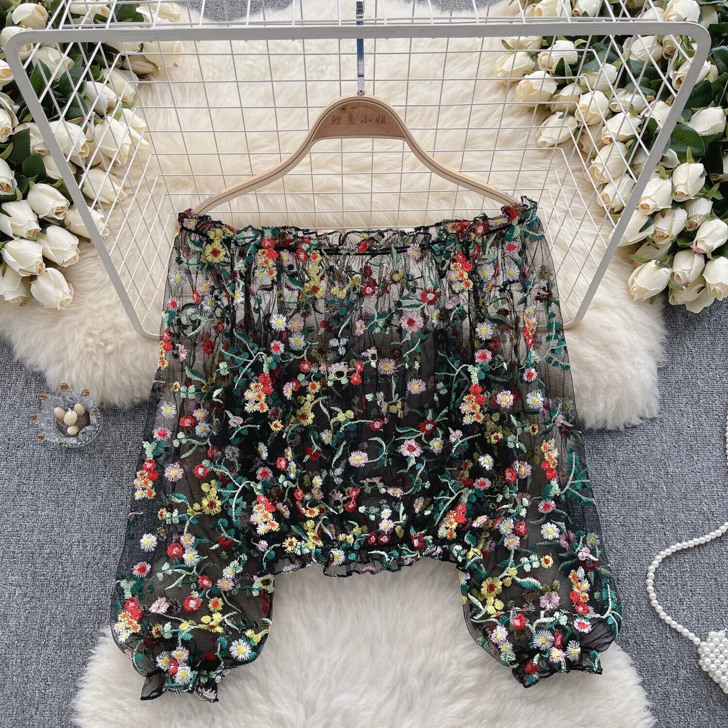 フェアリースタイルメッシュ刺繍デザインワンショルダー長袖シャツ女性の夏ルーズ痩身ライト高級純粋な欲望トップ ロング サマー 夏物 ピュア lyxaj78890103217
