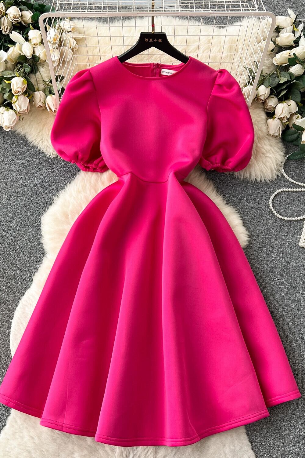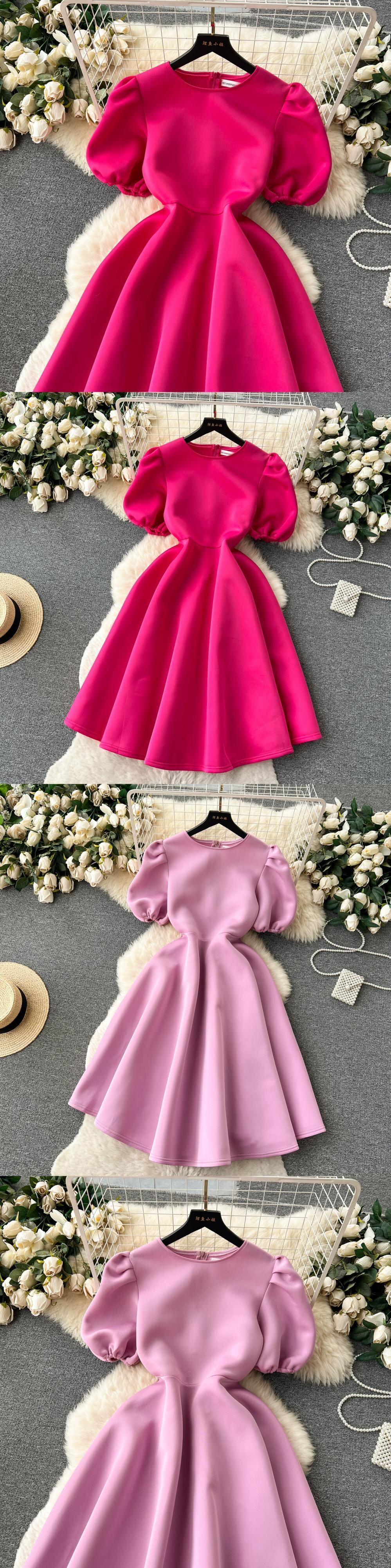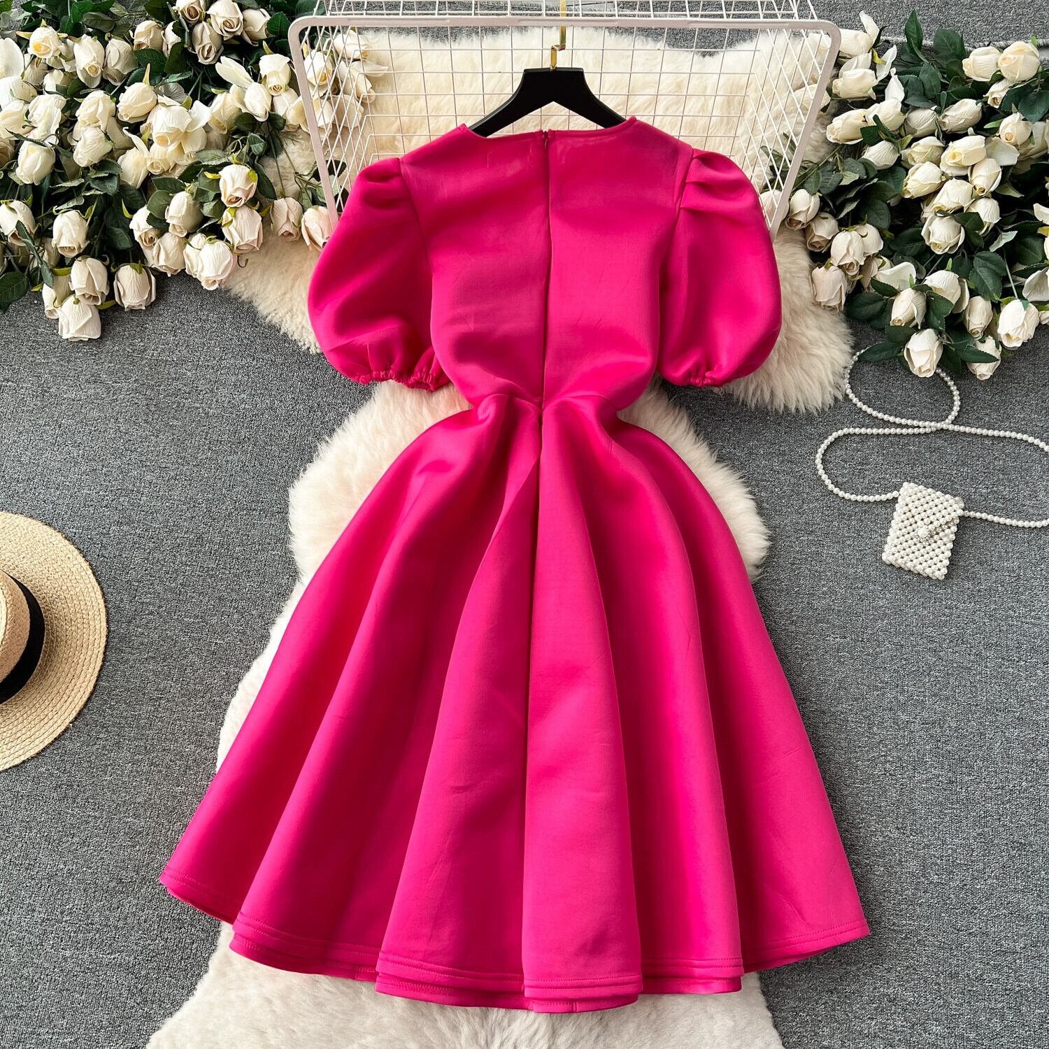 フレンチスタイルのラウンドネックパフスリーブウエストドレス女性の夏のスリムでハイエンドのフルレングスふわふわドレス サマー 夏物 Oネック lyxaj81245720857