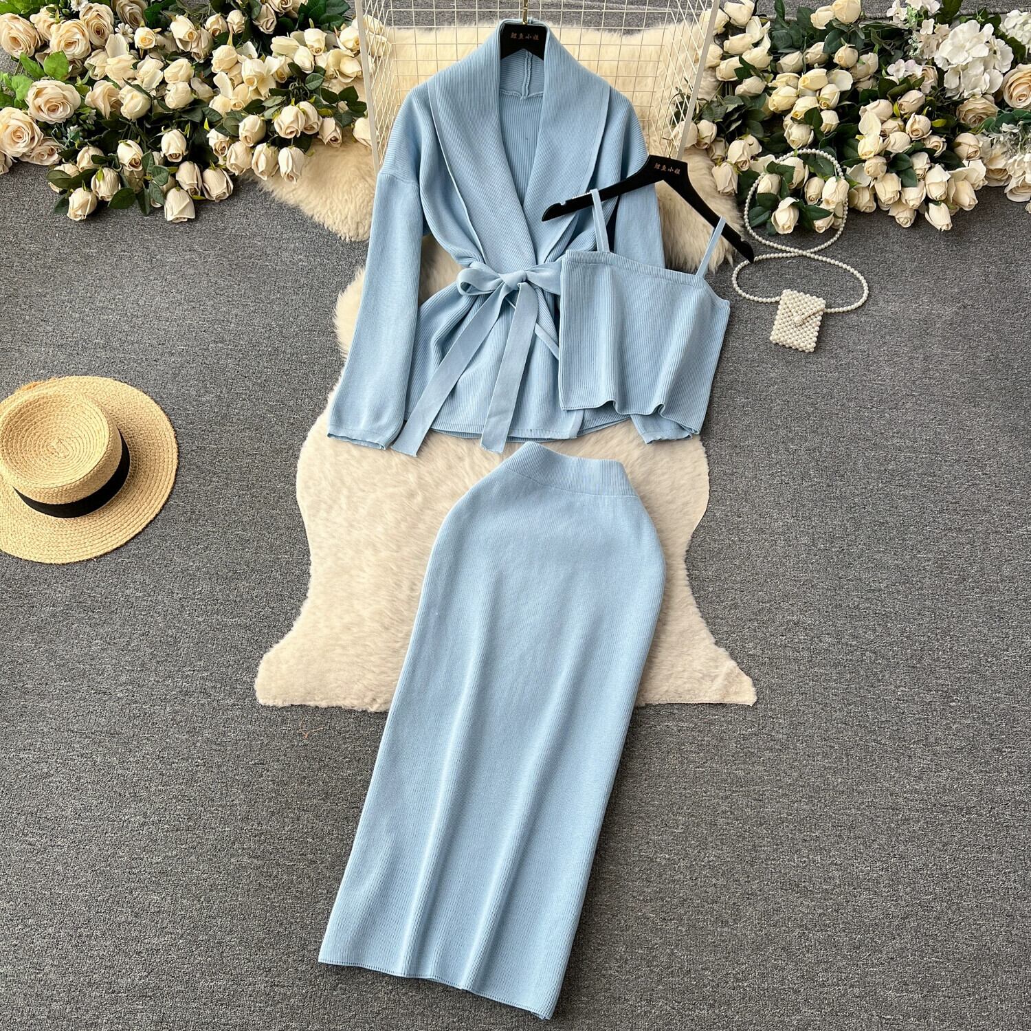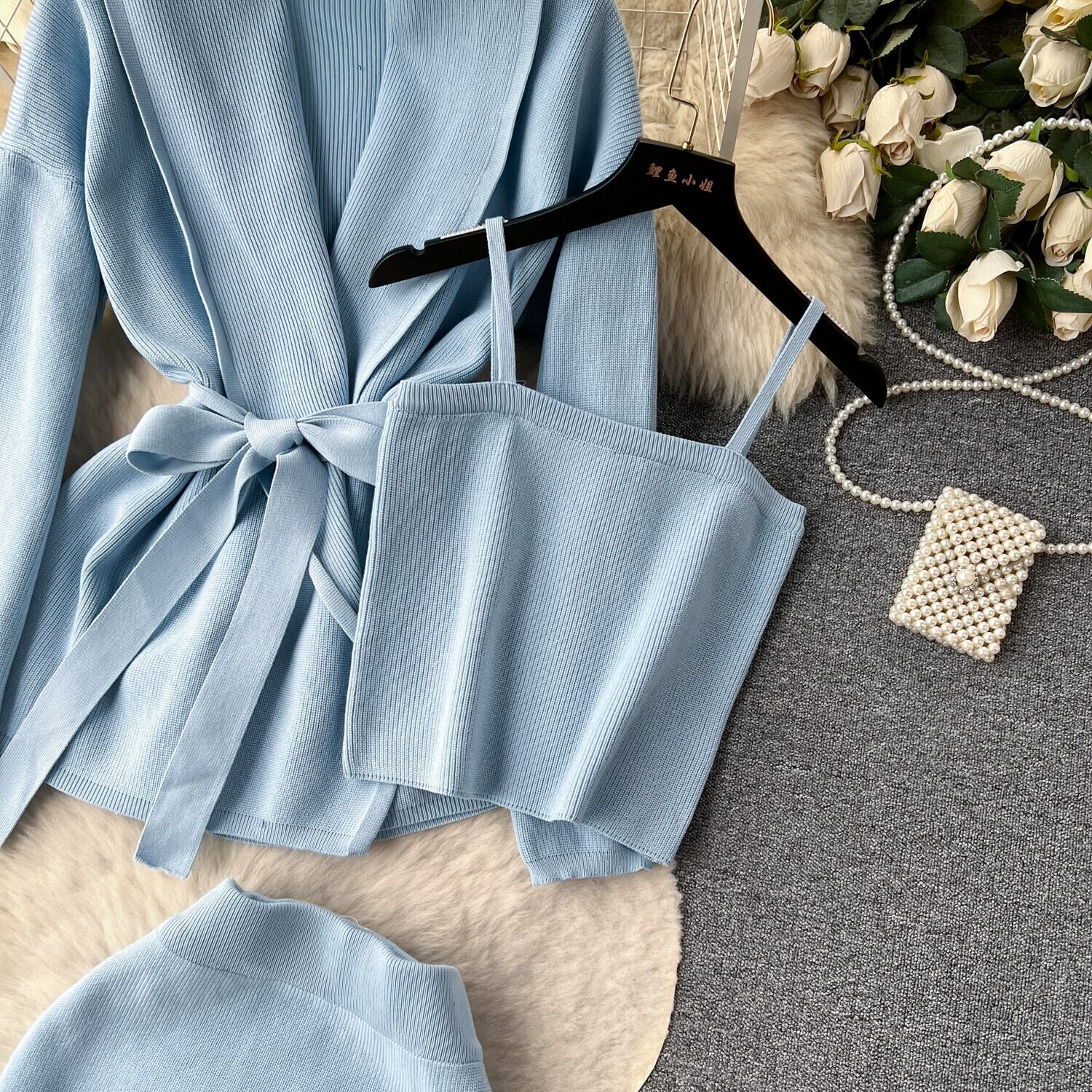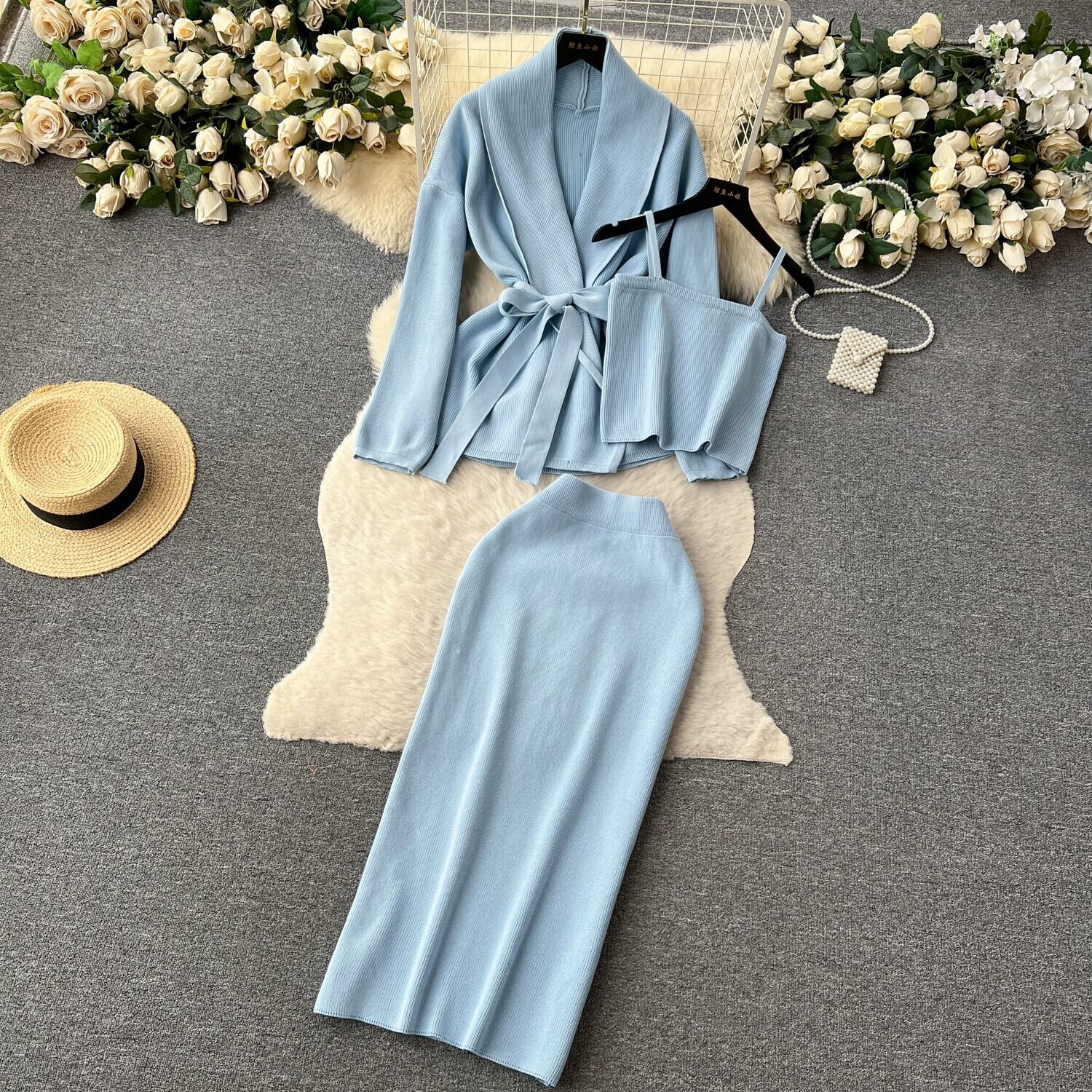 ドラマスリーピース秋衣装女性 2023 新しいニットカーディガン + キャミソール + スカートスーツ オータム 秋物 lyxaj65253046319
