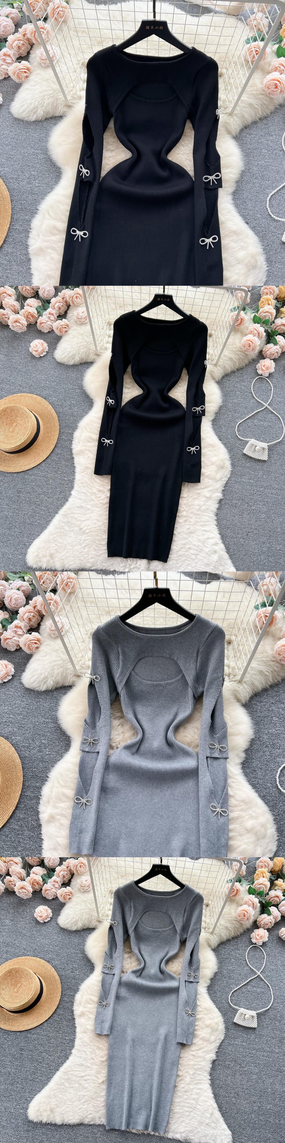 秋の光の成熟したスタイルのレトロなニットドレスの女性のニッチ中空リボンデザインスリムフェイクツーピースヒップスカート オータム 秋物 lyxaj43016655849