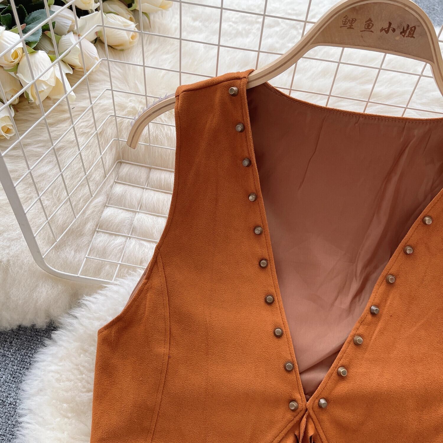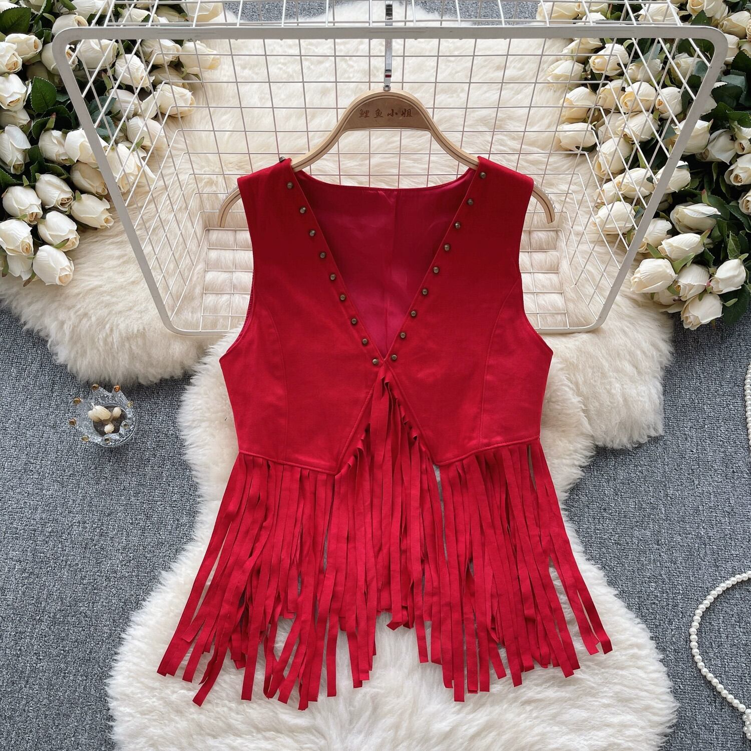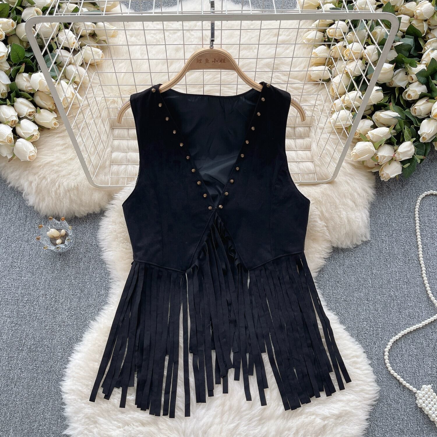 エスニックスタイルのレトロなダメージ加工ノースリーブベスト女性夏テル V ネックデザインハイエンドニッチシックトレンディなトップ サマー 夏物 Vネック lyxaj50330133916