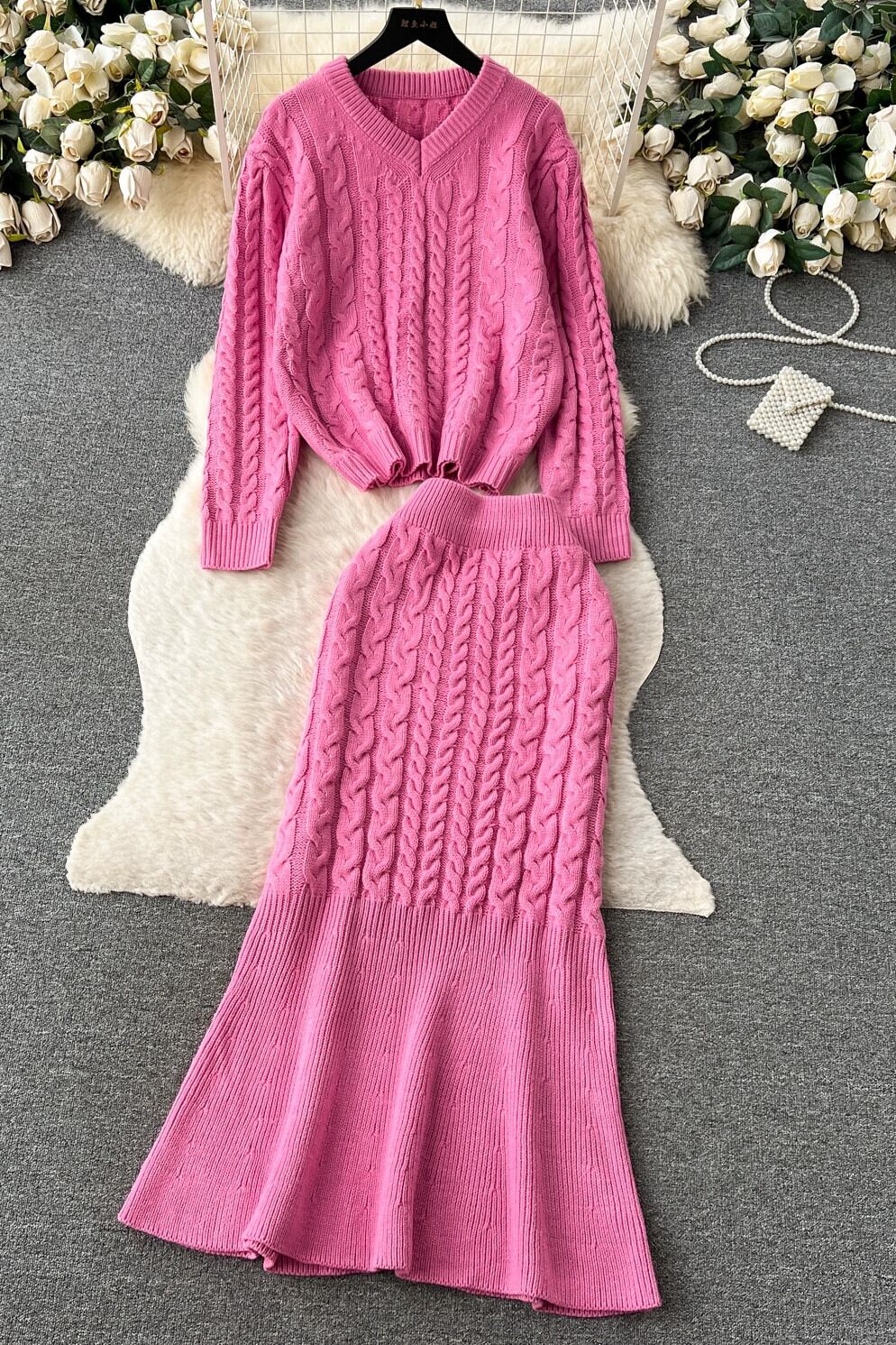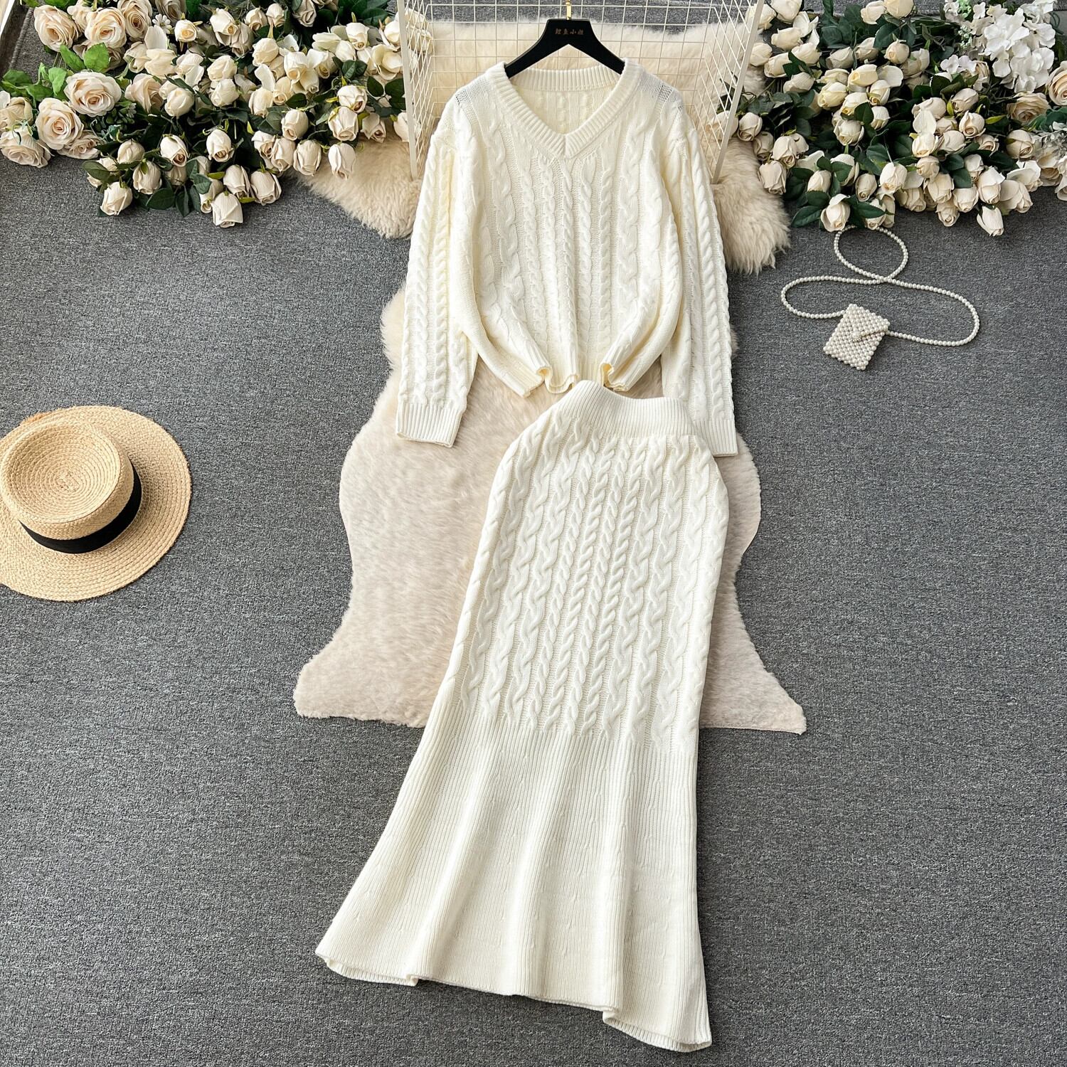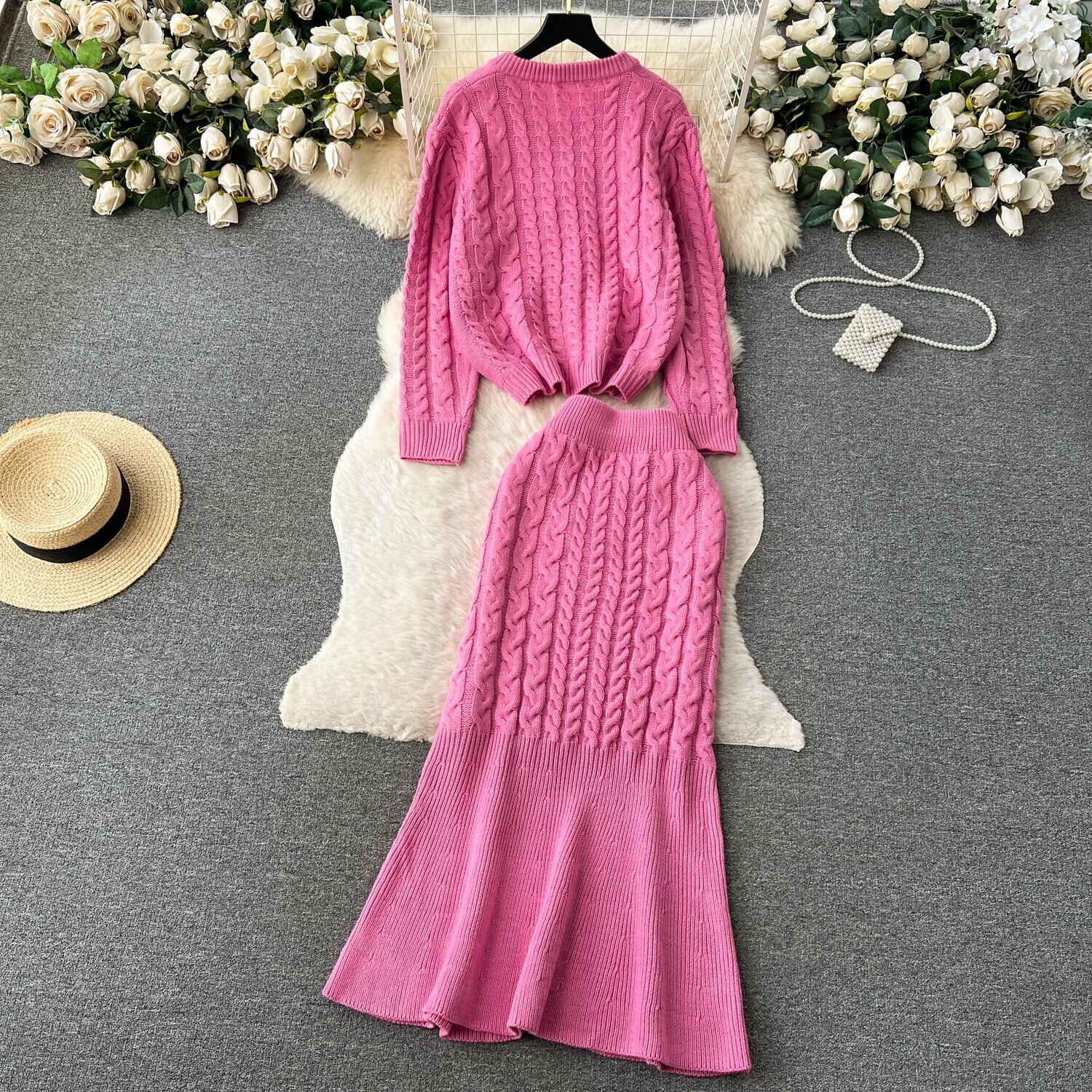 少し太くて着痩せできるスーツ、コールドスタイルのレディース香港風レトロツイスト長袖トップ+フィッシュテールスカートの2点セット ロング lyxaj1190748414