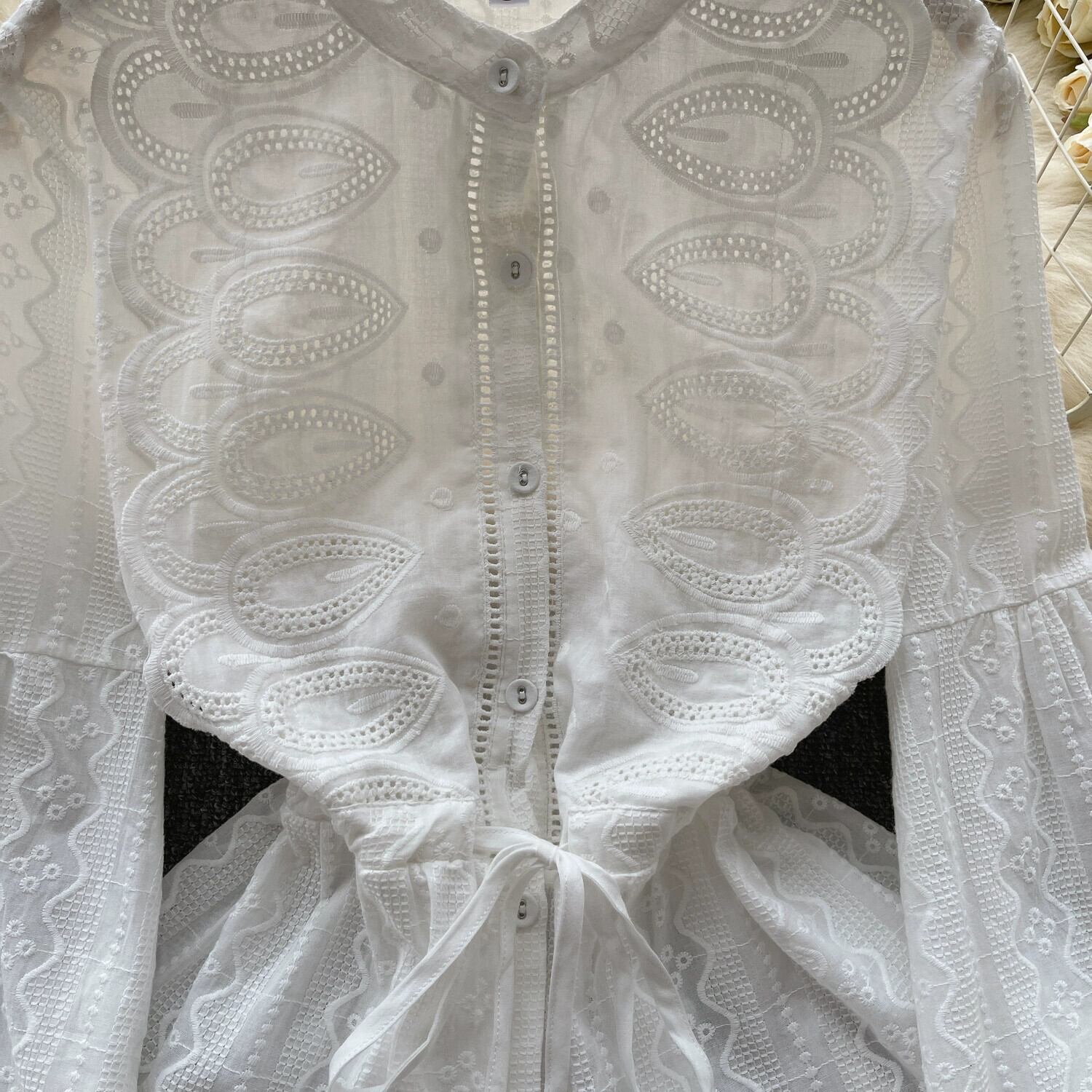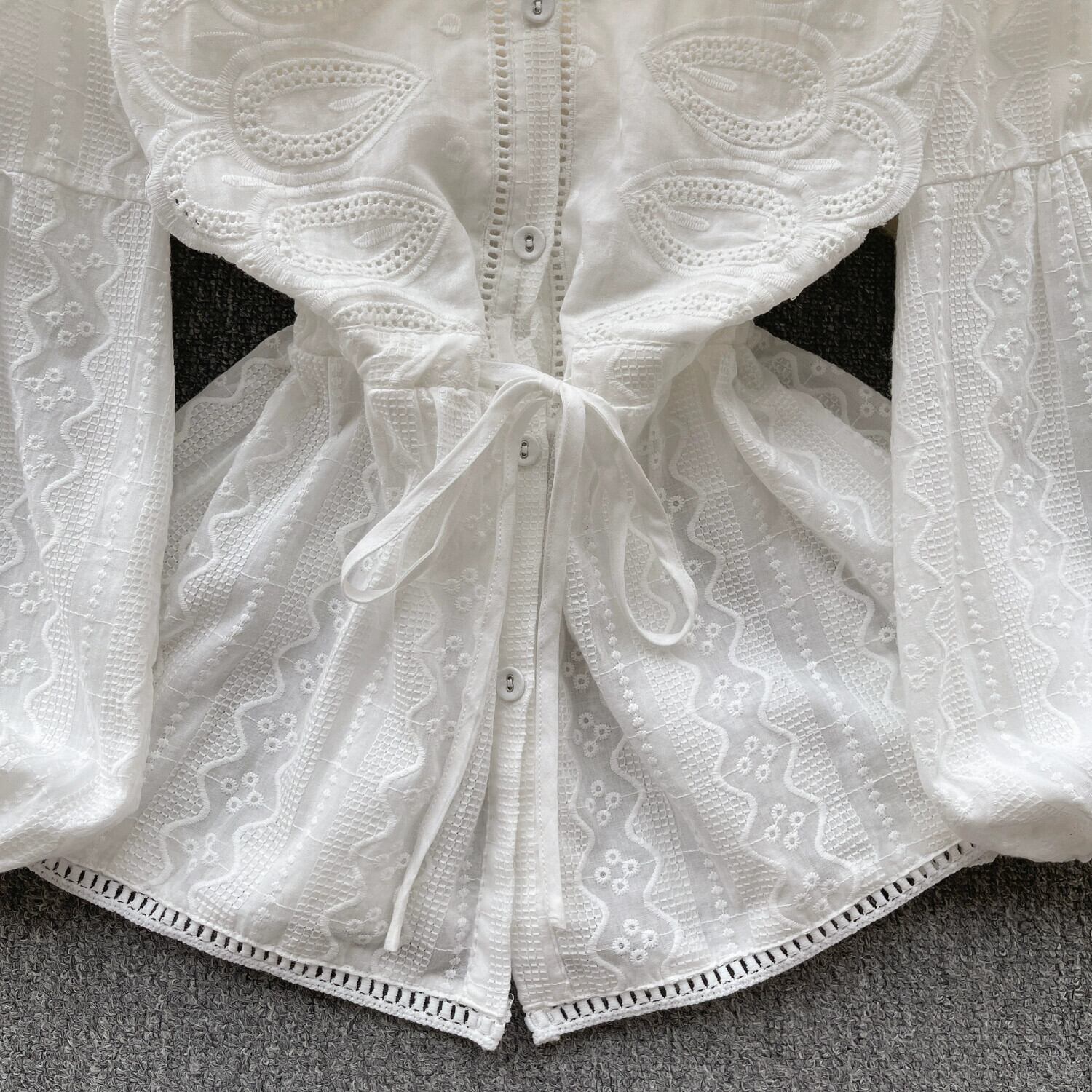 ライト高級社交界パフスリーブシャツ女性秋巾着シングルブレストウエストデザインハイエンドニッチ気質トップ オータム 秋物 lyxaj7571355964