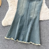 エイブル ストリート デニム スーツ レディース、ストラップ付きデザイン、大きなラペル ジャケット、ローエッジ ヒップハグ スカート、2 点セット lyxaj86371104742