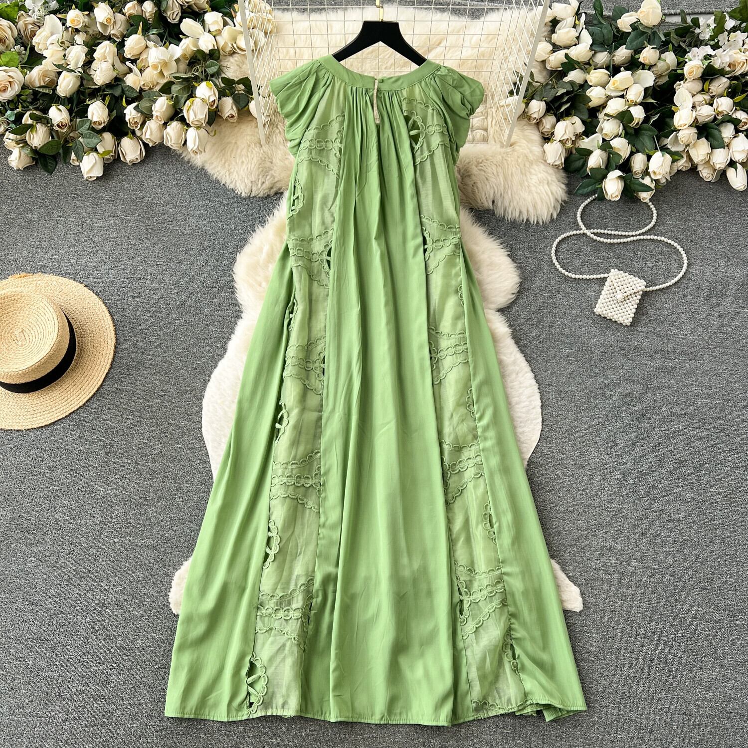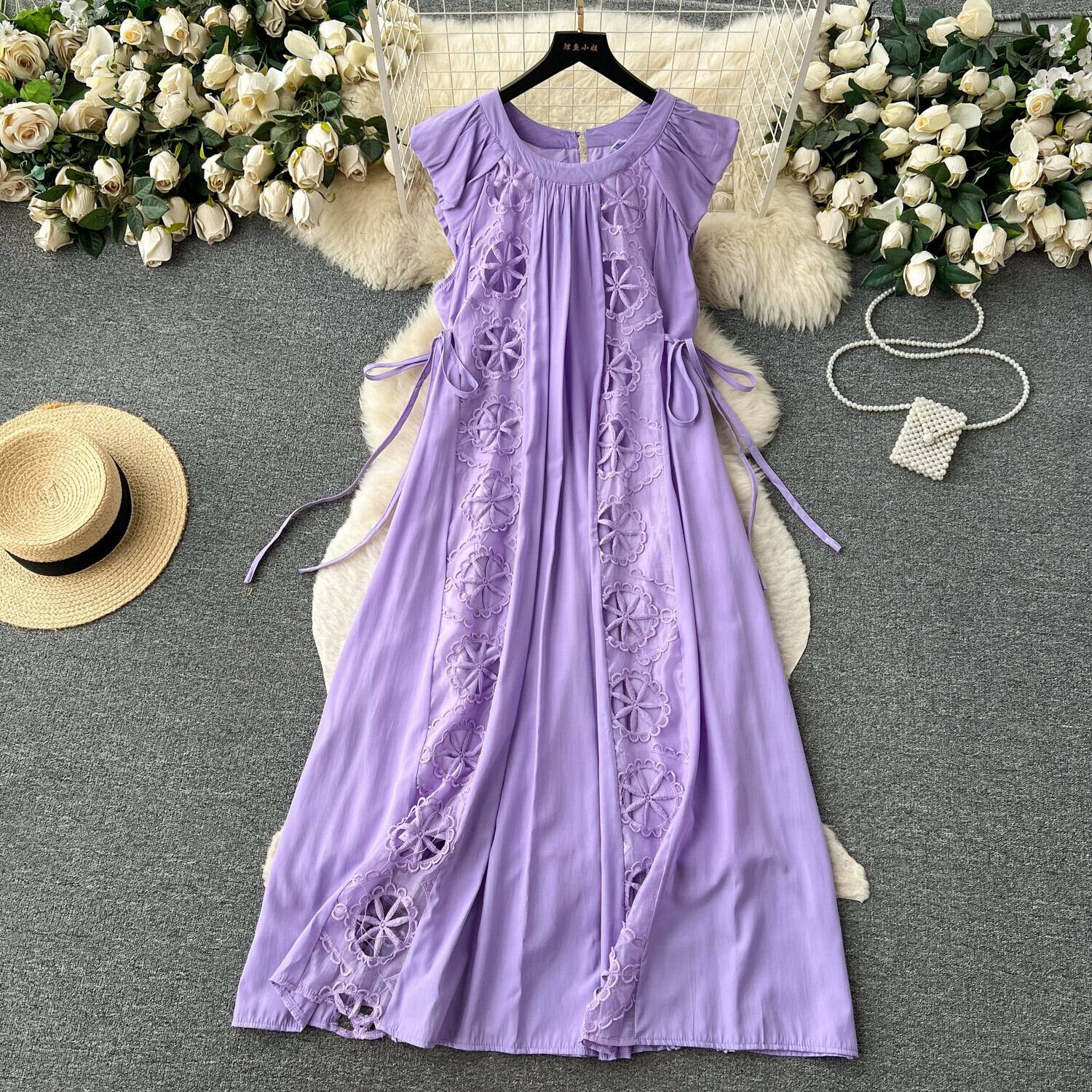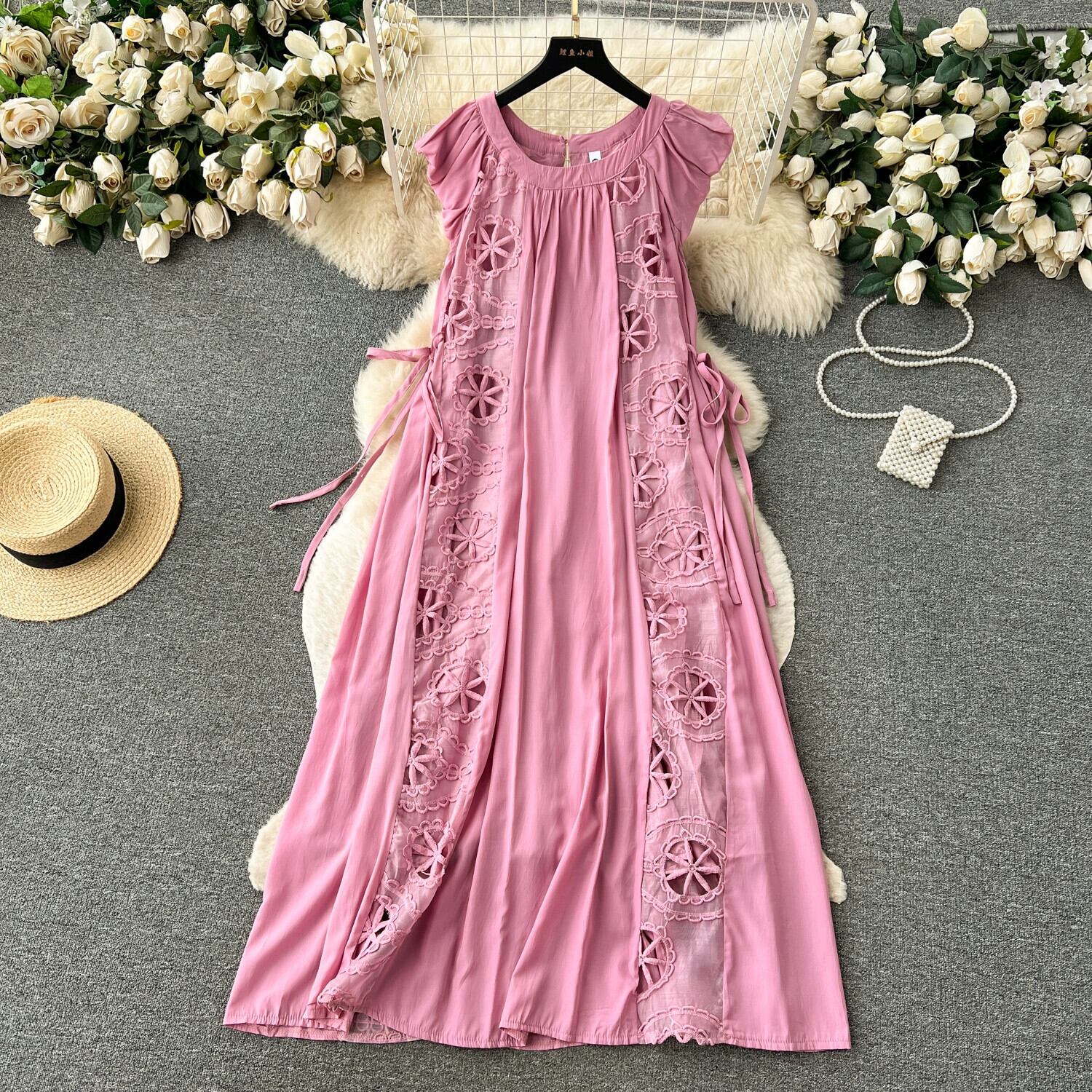 フレンチティーブレイクハイエンド刺繍甘いドレープエレガントなドレス女性ドーパミンスーパーフェアリースタイル小さな飛行袖ロングドレス 大人ガーリー スウィート キュート カジュアル lyxaj90429513970