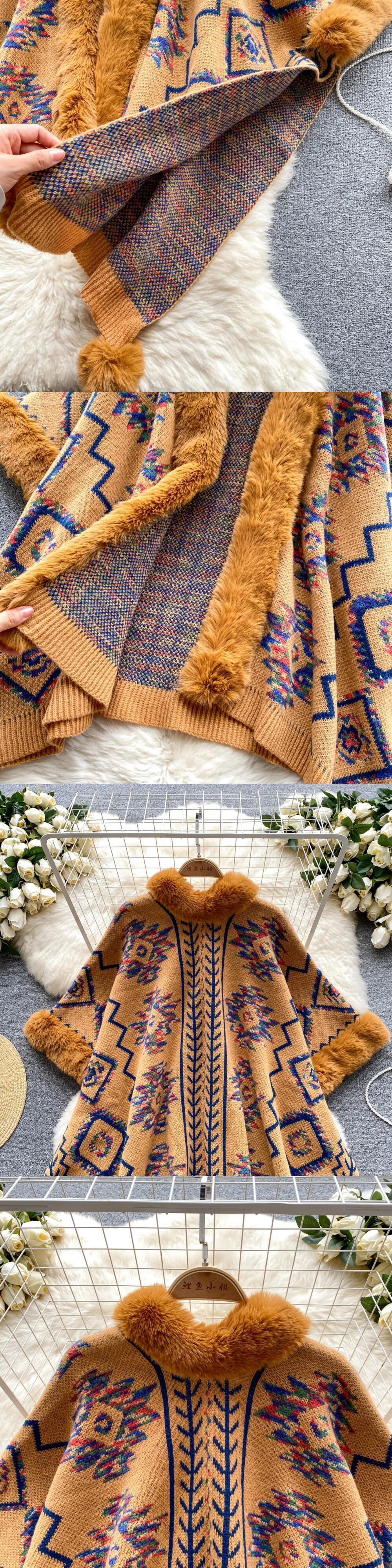 レトロなエスニックスタイルのショールケープ女性の秋と冬の豪華な襟デザインルーズニッチスーパーフェアリートップジャケット オータム 秋物 ウィンター 冬物 lyxaj10216745230