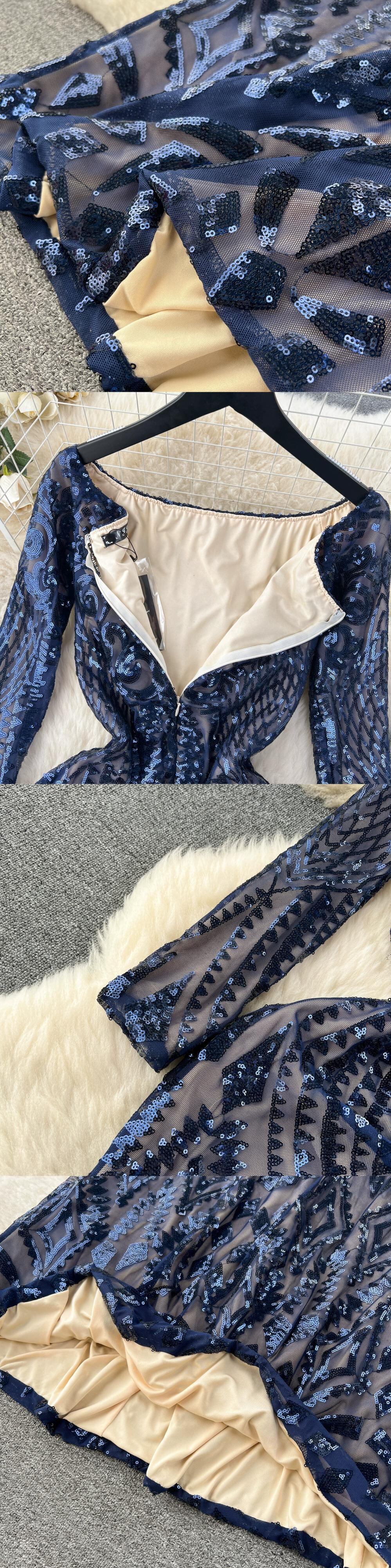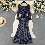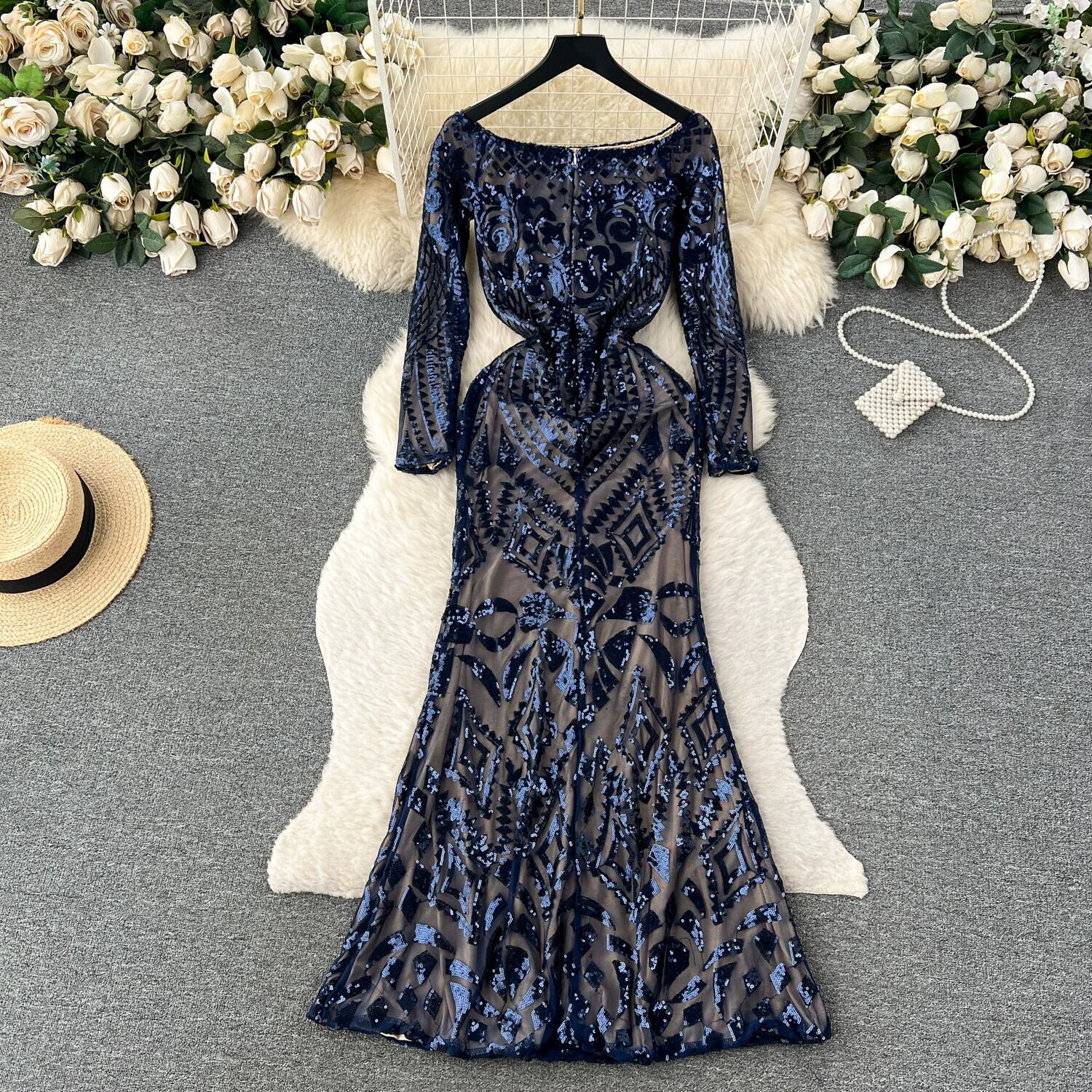 バンケットドレススカートは日常生活でも着用できます。重工業メッシュ刺繍スパンコール長袖エレガントなハイエンドドレスの女性 ロング レッド lyxaj68154073806