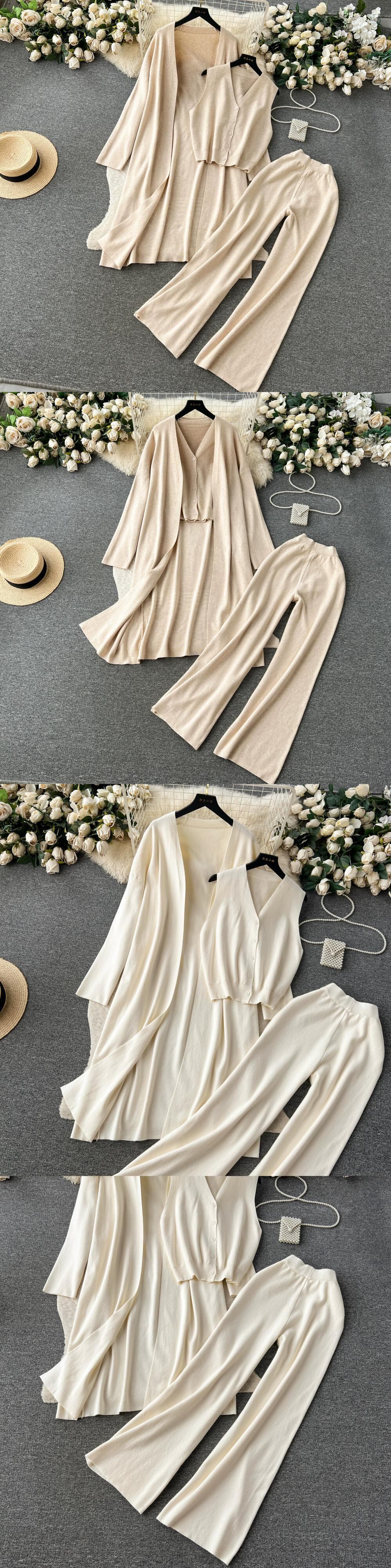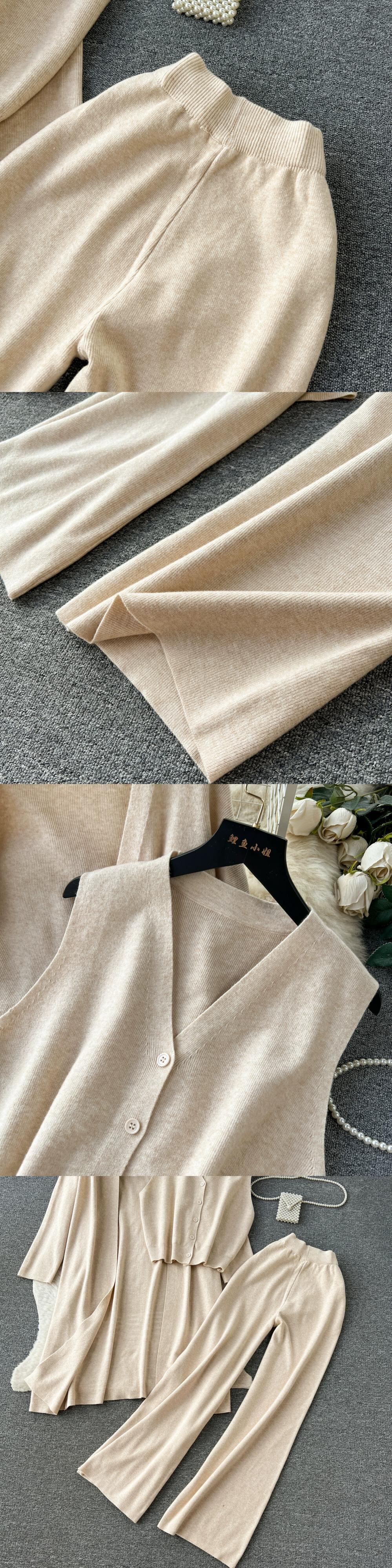 秋と冬の怠惰なスタイルのセーターカーディガンジャケット多用途ボトリングシャツ2023新しい女性のワイドレッグパンツファッショナブルな3点セット オータム 秋物 ウィンター 冬物 lyxaj85772442626