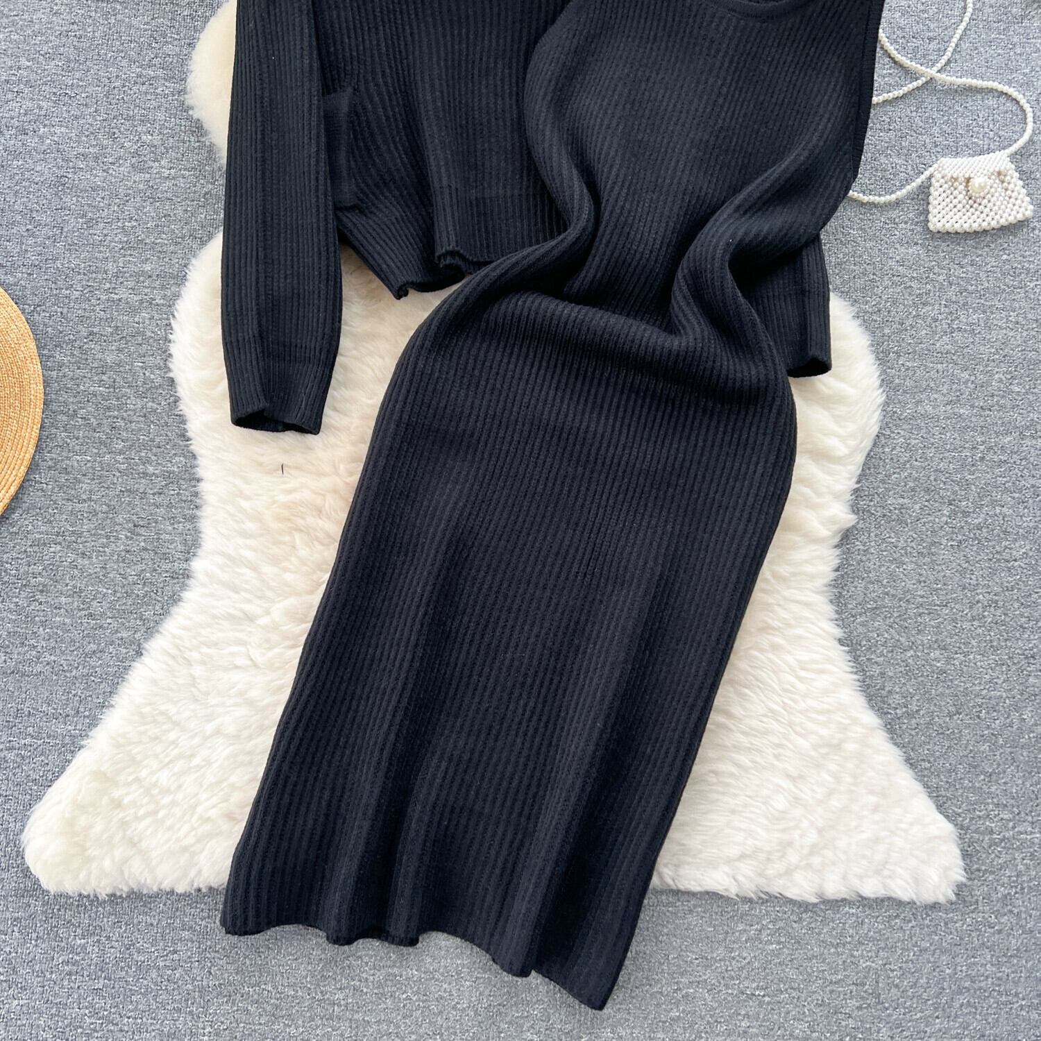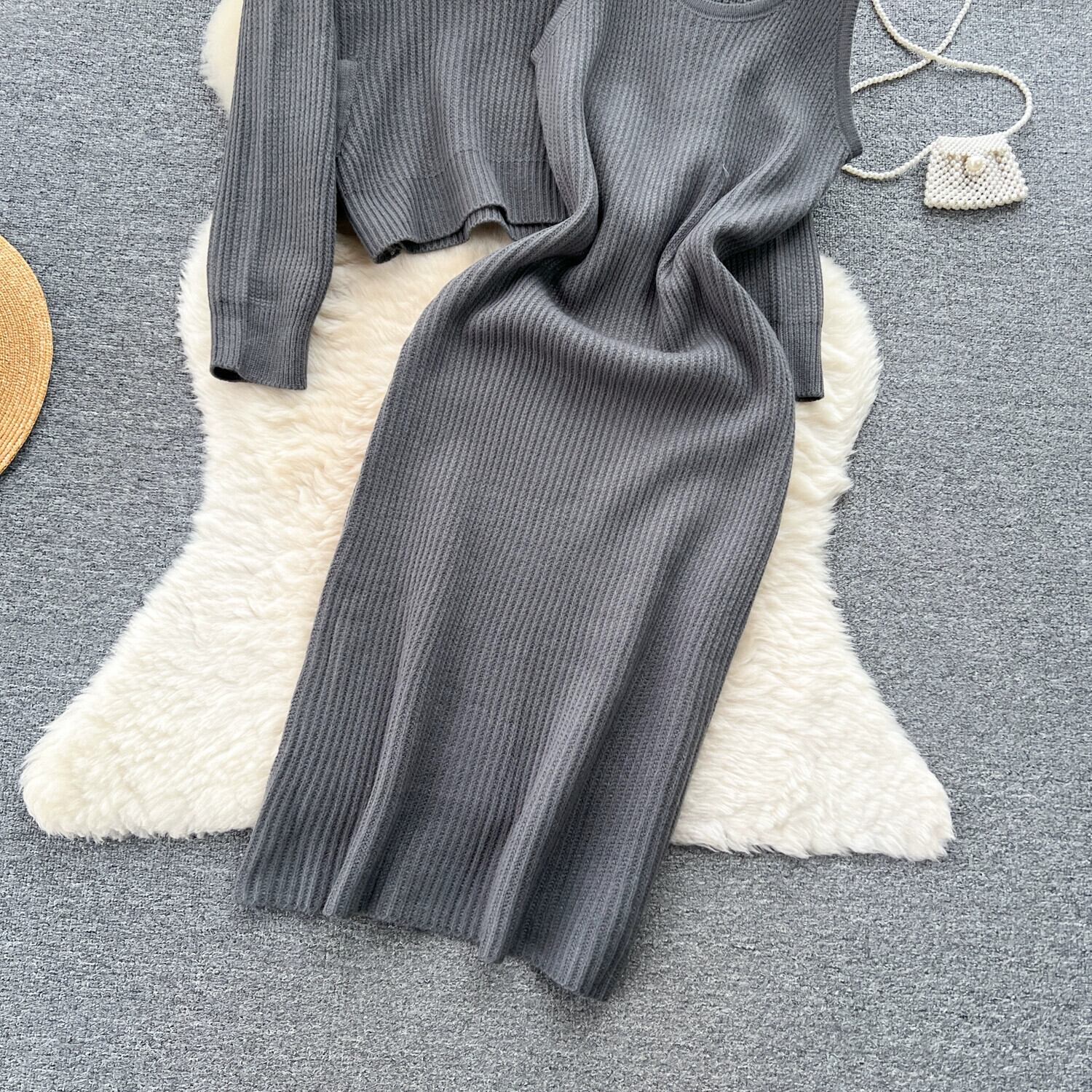 秋と冬の怠惰なスタイルのカジュアルスーツの女性の緩いフード付きニットセーターウエストベストドレスレイヤードツーピースセット レッド オータム 秋物 ウィンター 冬物 lyxaj22752835781