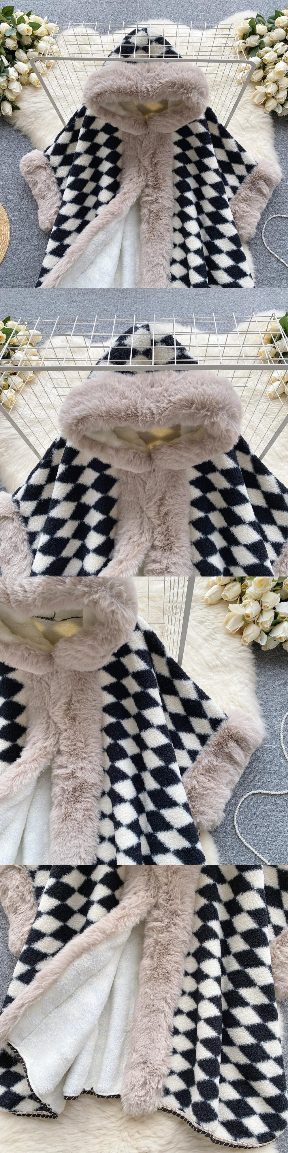 ケープケープコート女性 2023 新しい人気デザインの毛皮の襟プラスベルベット肥厚大型バージョンカーディガンショール女性 lyxaj44951994718
