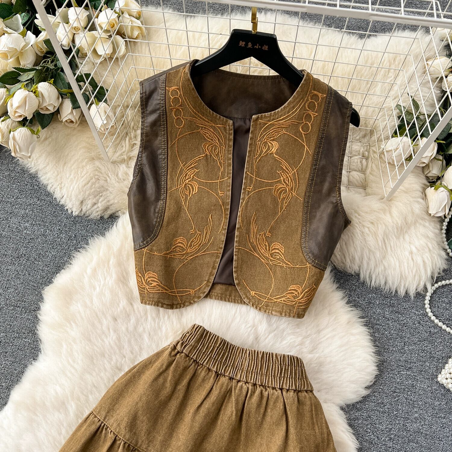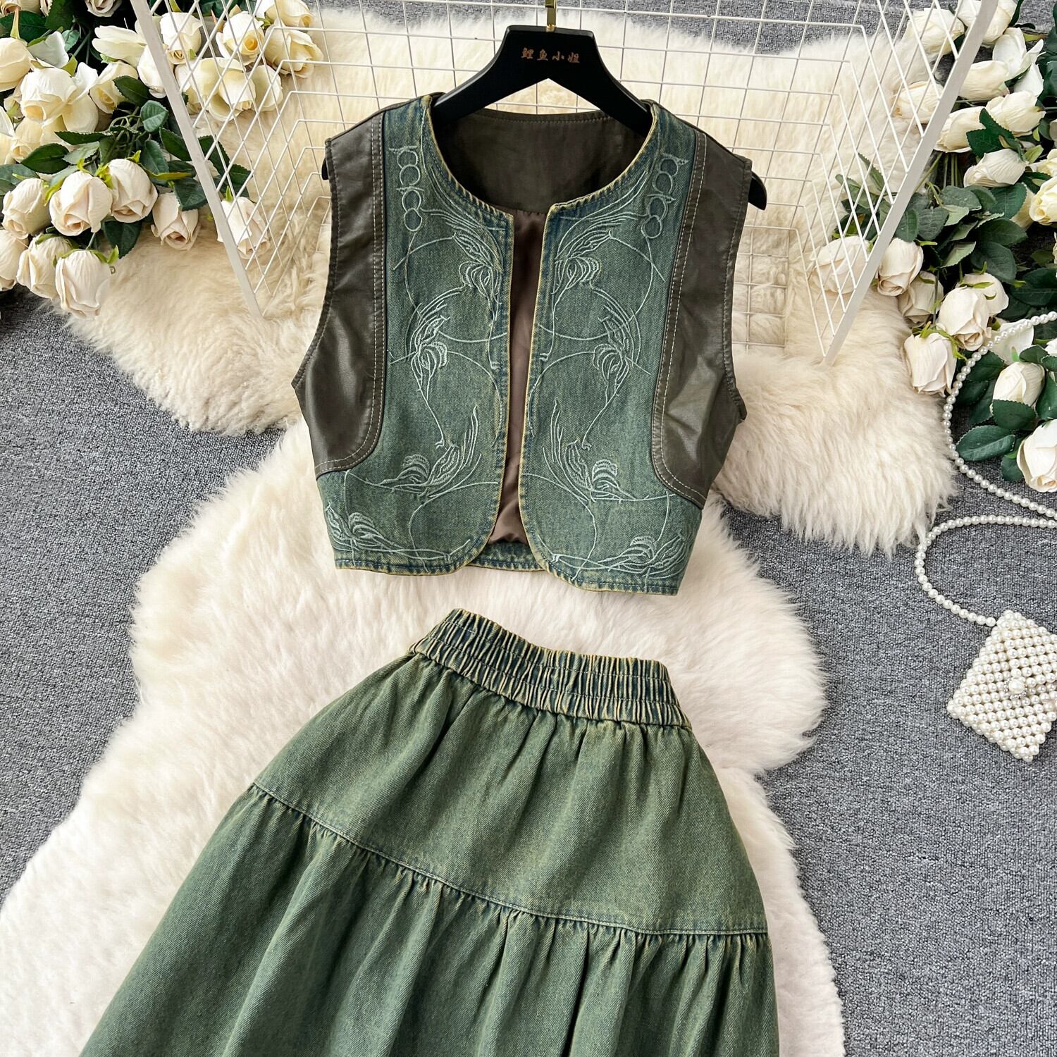 アメリカンレトロジャケット女性 2023 新しい人気ニッチデニムスカート初秋ツーピーススカートスーツ オータム 秋物 lyxaj5779016787