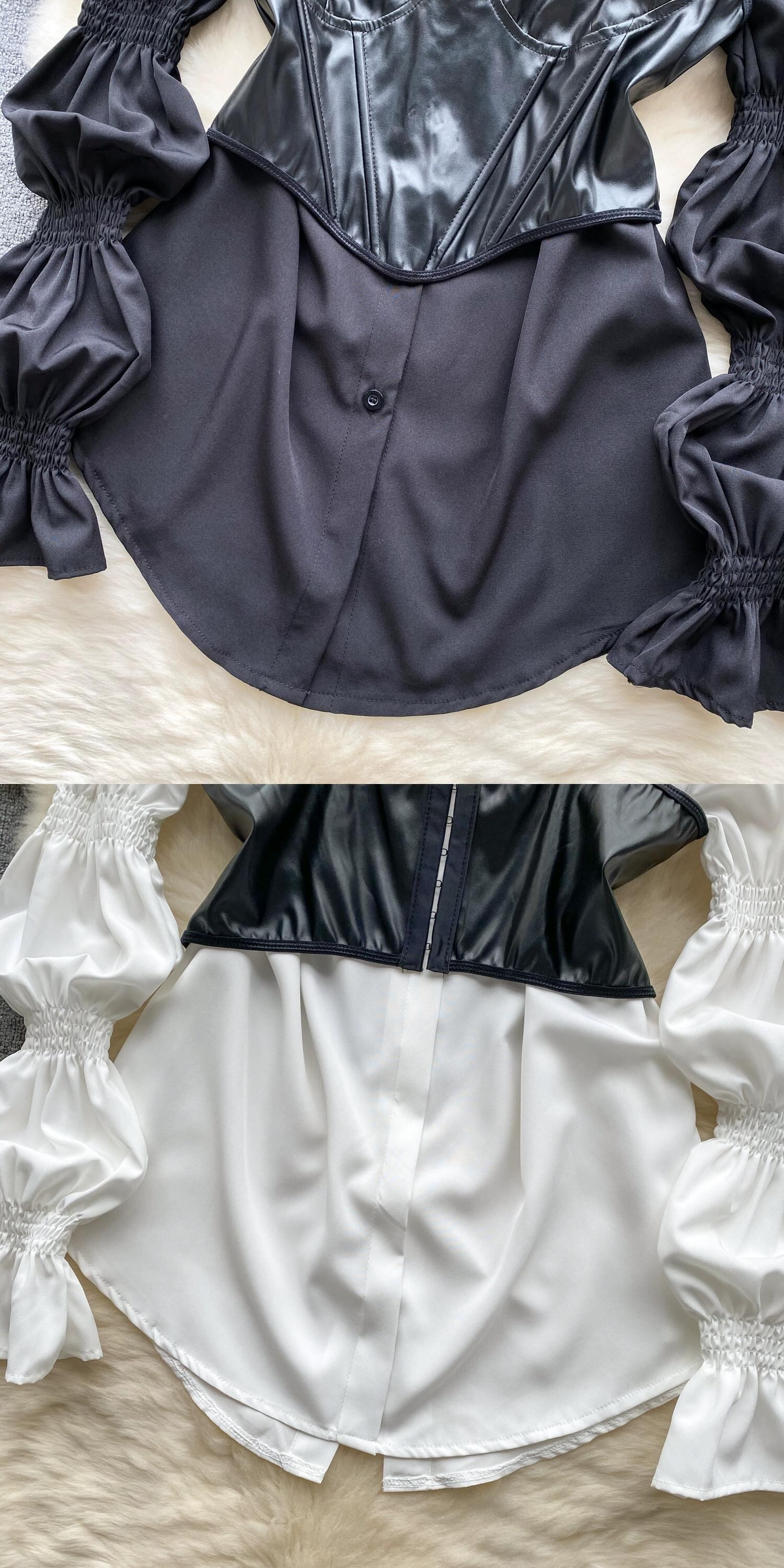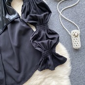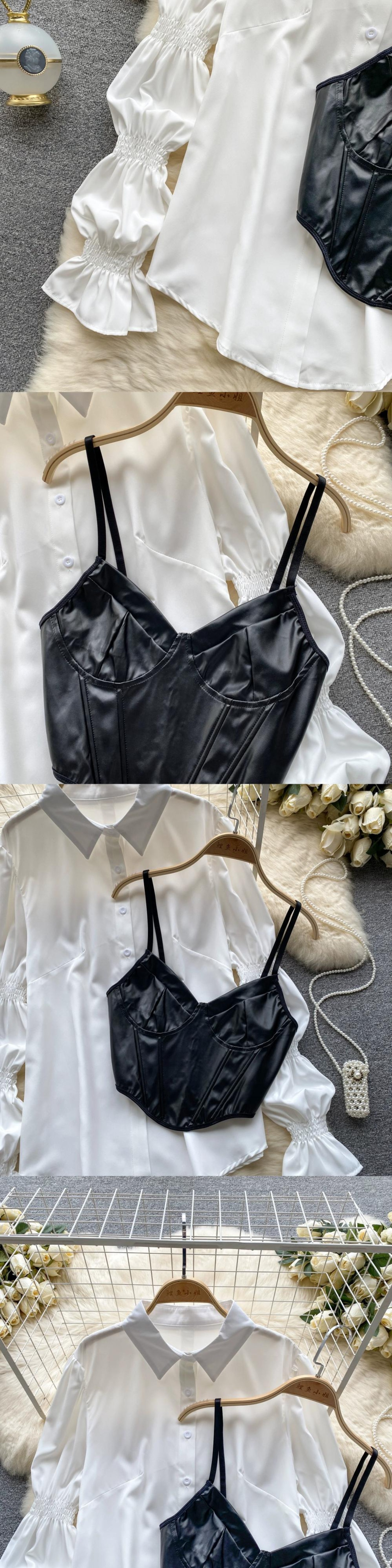 気質とデザイン性を兼ね備えた初秋の軽やかなフランス製高級ルーズパフスリーブシャツ+サスペンダーチューブトップ2点セット オータム 秋物 lyxaj5281725694
