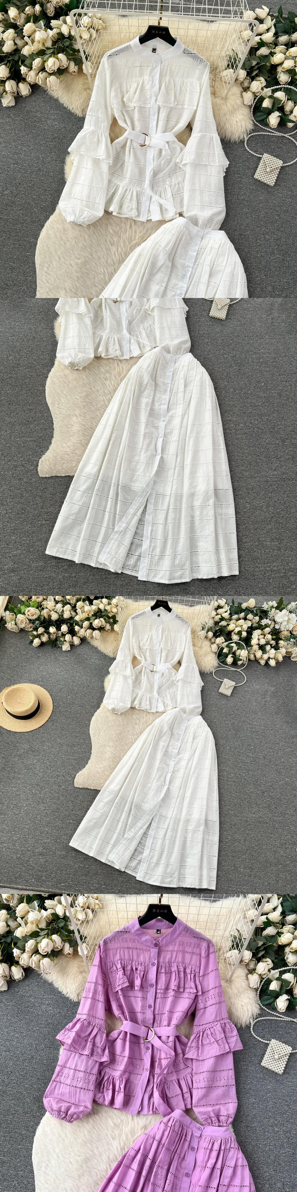 秋服、ハイエンドで軽い高級レディーススーツ、スタイリッシュなパフスリーブトップ、中空スカート、ツーピーススカートスーツ オータム 秋物 lyxaj56752971328
