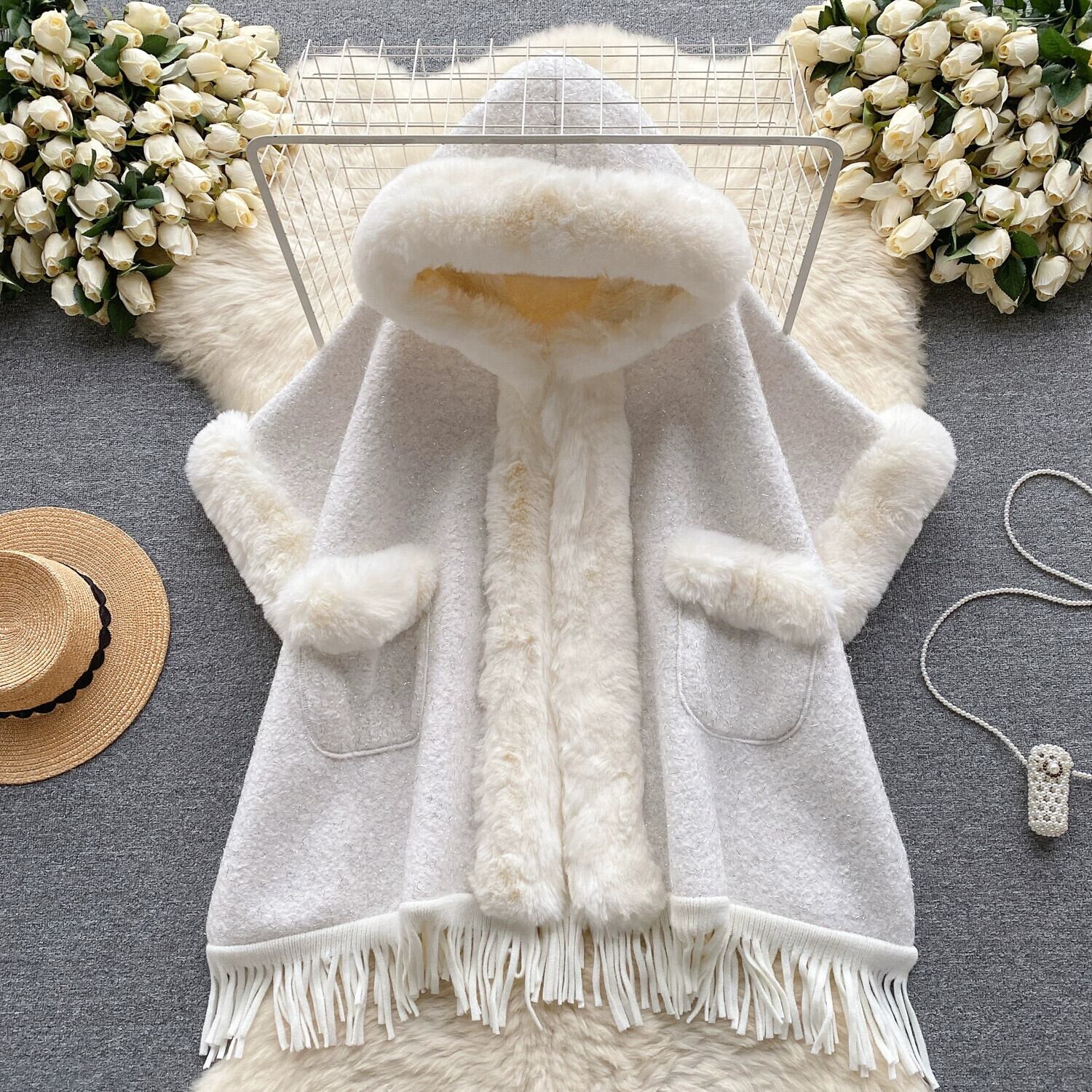 ケープコート レディース 2023 秋冬新スタイルハイエンド多用途ルーズファーステッチテルフード付きショールコート オータム 秋物 ウィンター 冬物 lyxaj29281034473