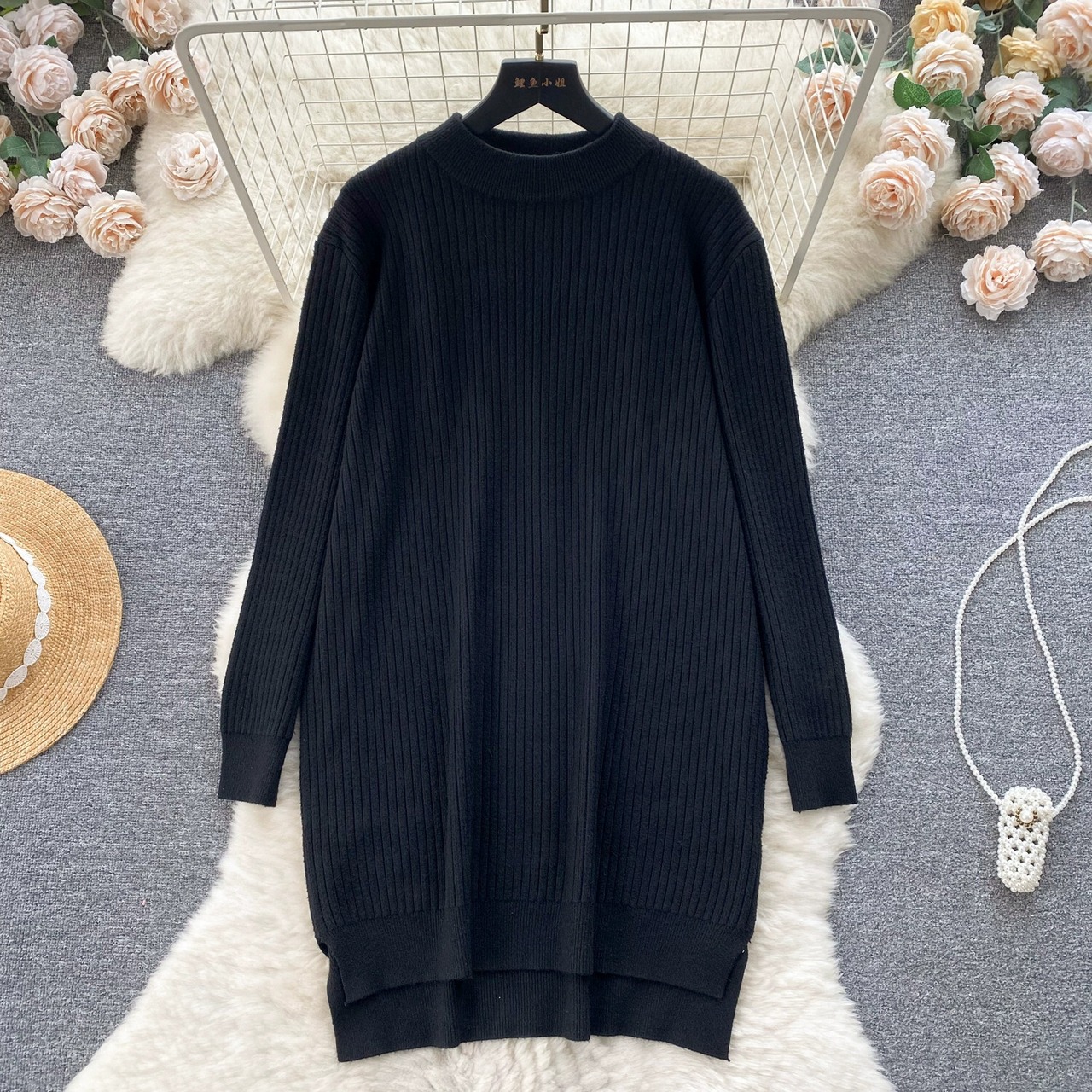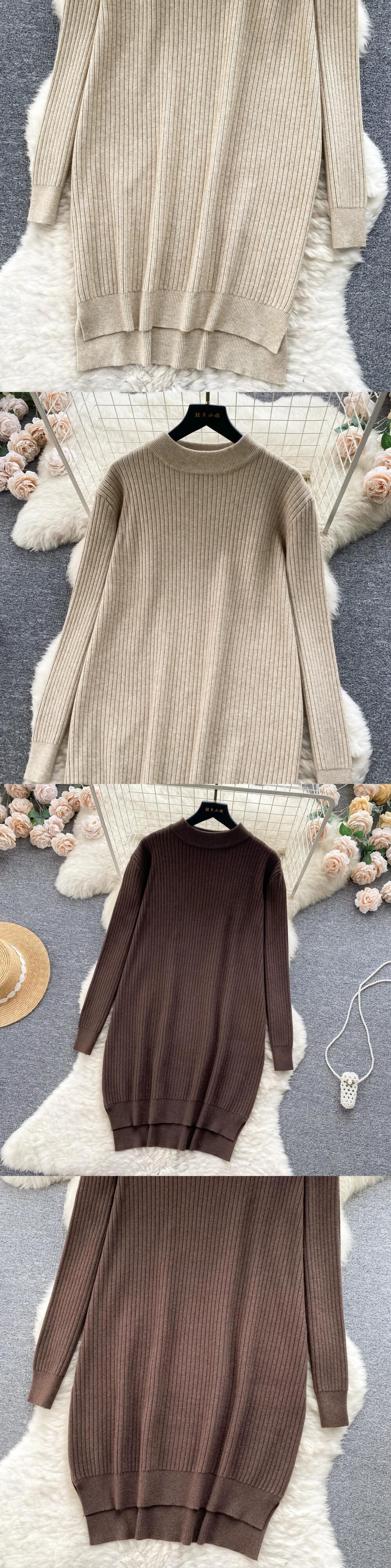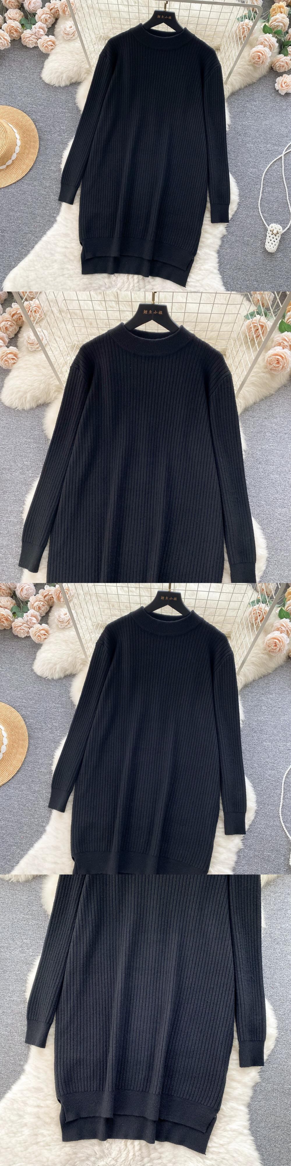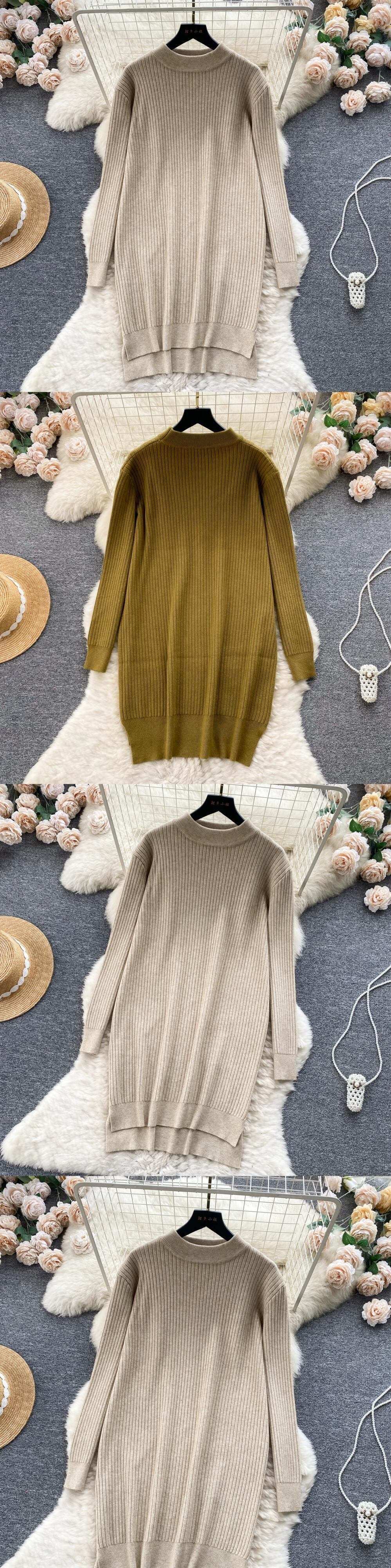 秋と冬のコートとセータースカートの女性、怠惰なスタイル、ルーズなラウンドネック、長袖ニットスカート、スリムなミドル丈のドレス ロング オータム 秋物 ウィンター 冬物 Oネック lyxaj8139891581