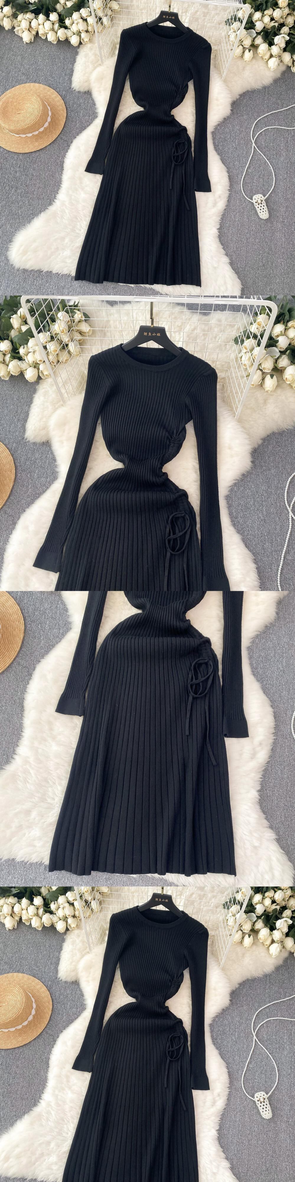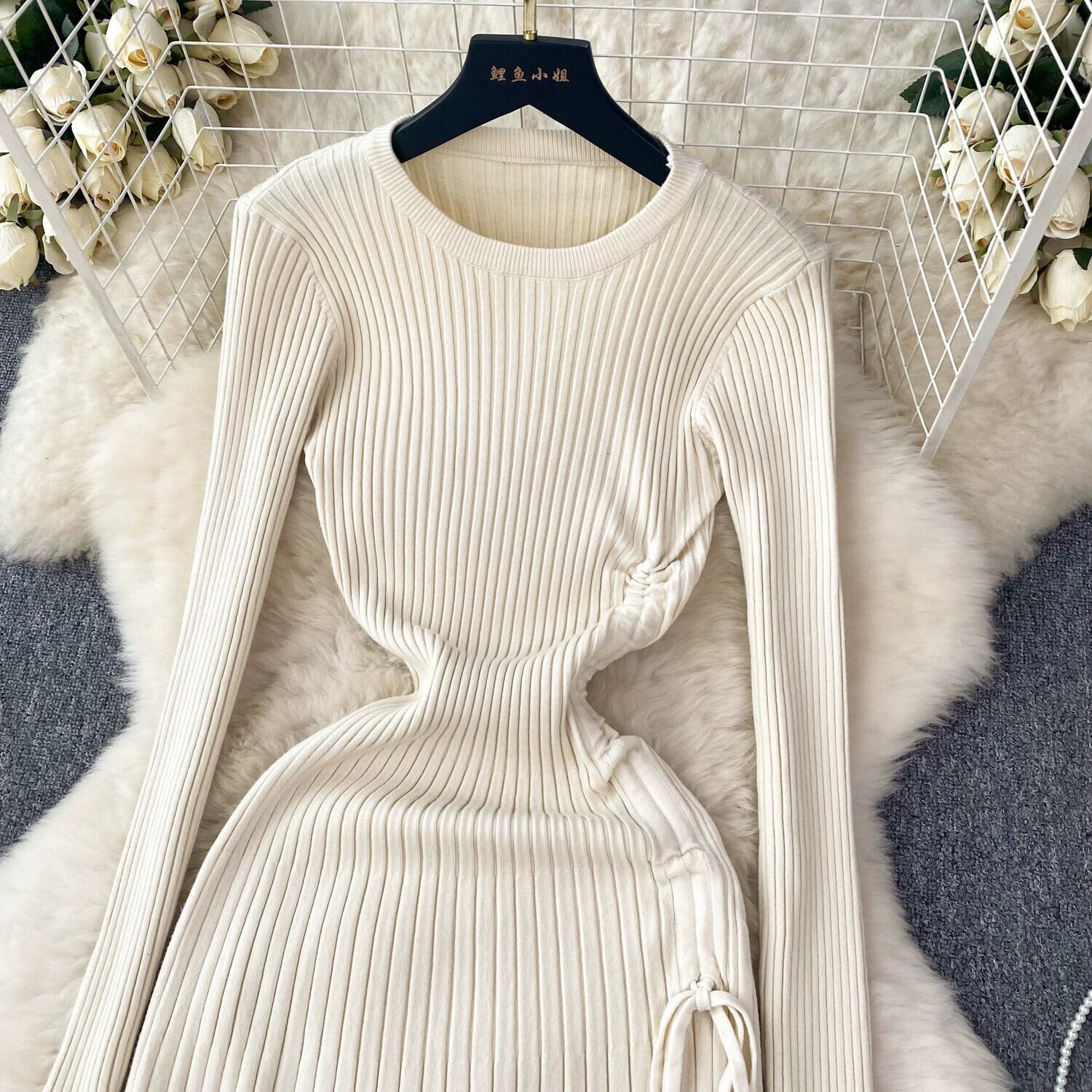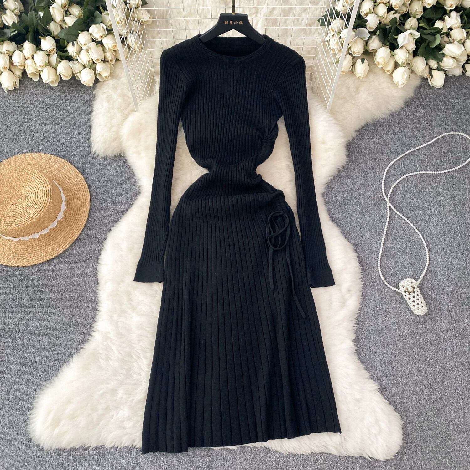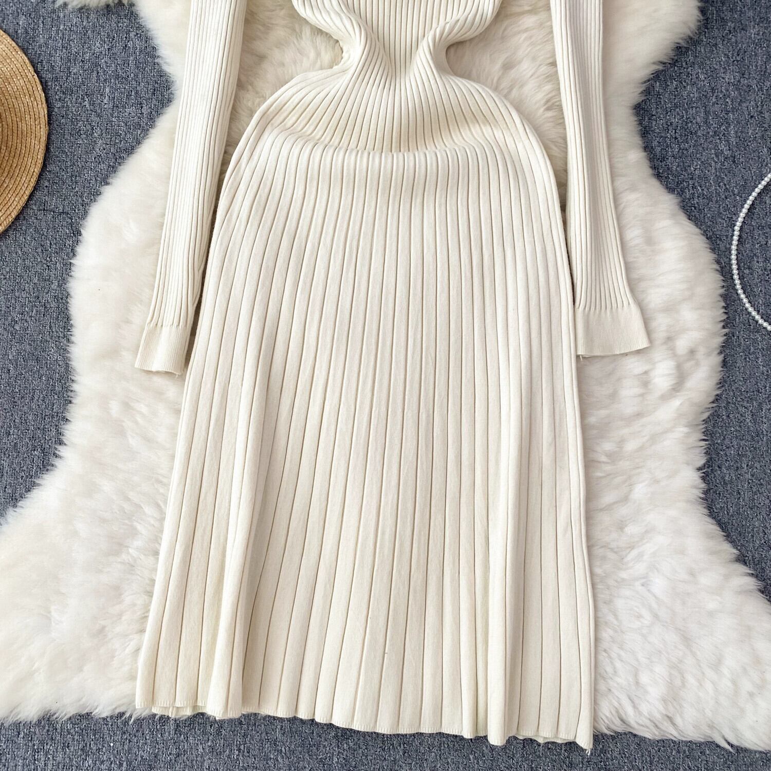 長袖ボトスカート女性の秋と冬の 2023 新しいソリッドカラーのピットストリップスリムミッドレングスニットドレスの女性 ロング オータム 秋物 ウィンター 冬物 lyxaj15441730386