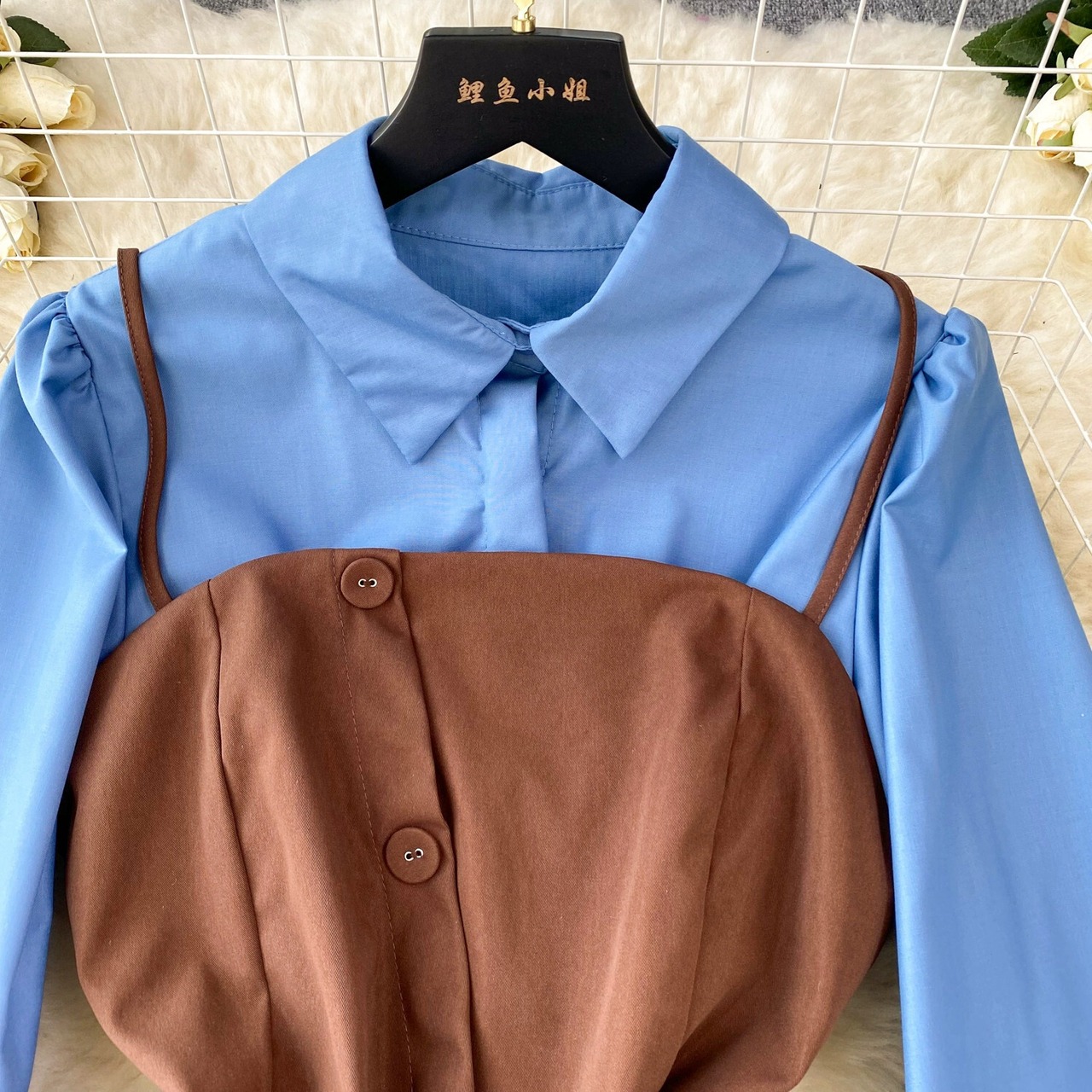 スタイルスーツ女性 2023 新しい秋デザインサスペンダースカート多用途長袖シャツスカート年齢を軽減する 2 点セット ロング オータム 秋物 lyxaj66388679266