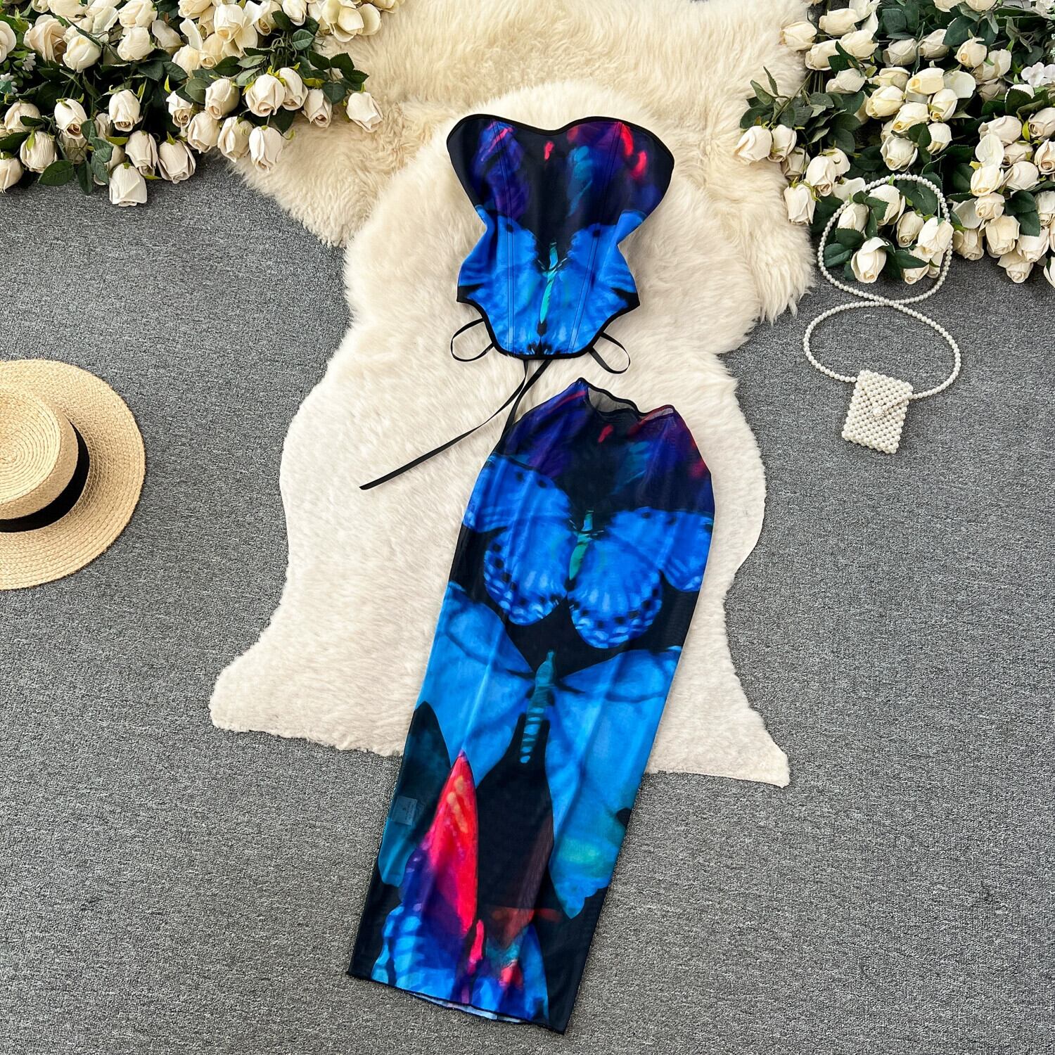 ヨーロッパとアメリカンスタイルのスーツ 2023 女性の夏のセクシーなチューブトッププリントスカート 2 点セット サマー 夏物 ヨーロピアン lyxaj3807781894