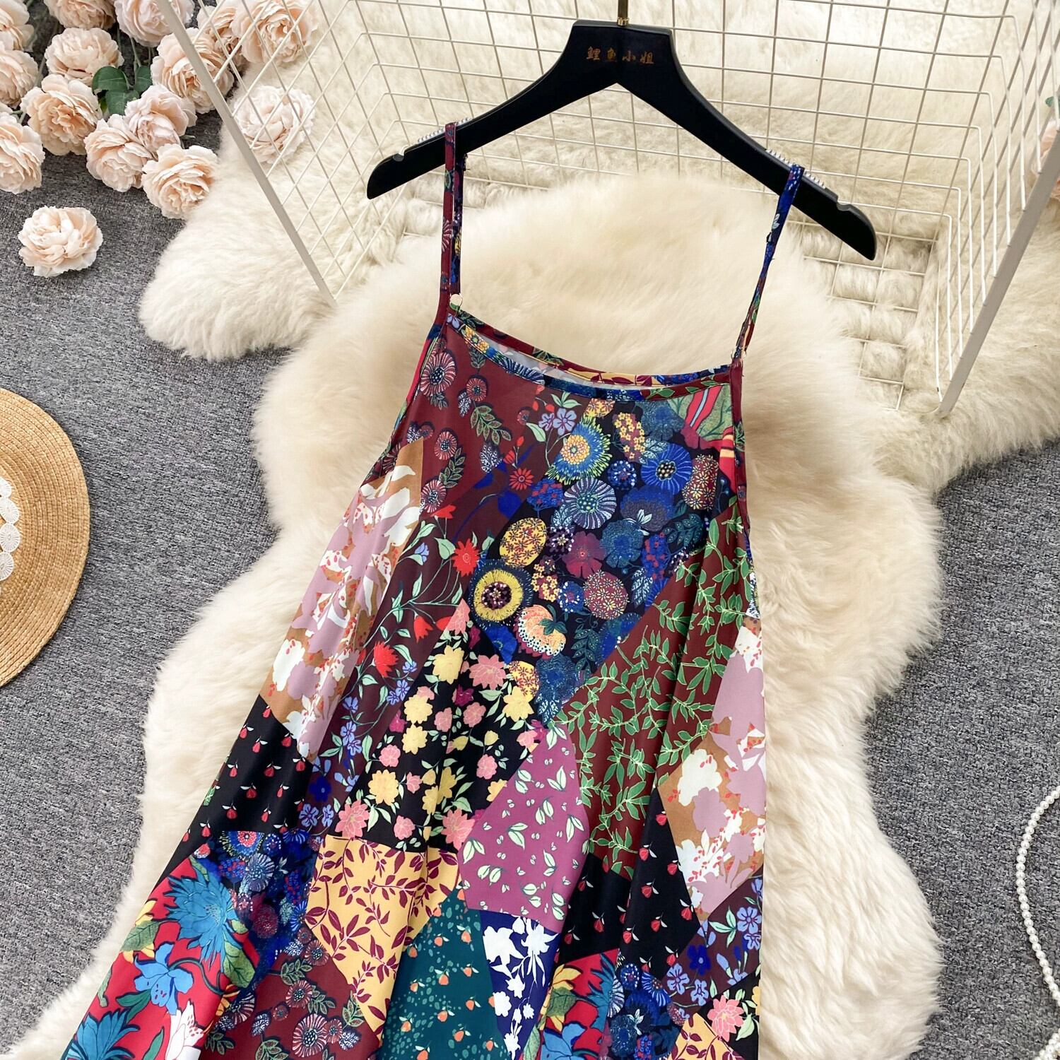 ボヘミアンリゾートスタイルサスペンダードレス女性の夏の新しいスタイル緩い怠惰なカジュアルファッションプリント妖精スカート サマー 夏物 lyxaj94907168261