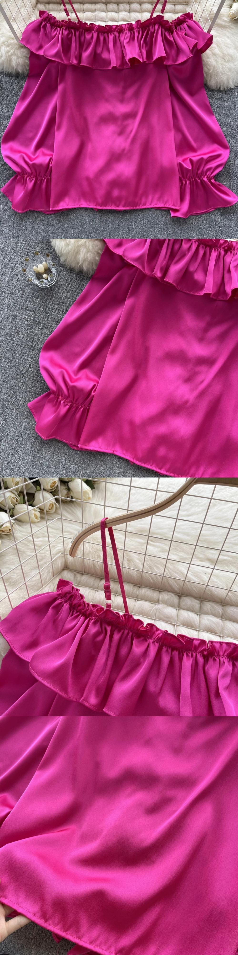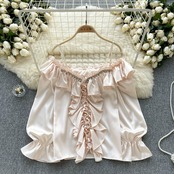 フランスのレトロなスタイルのワンショルダーサスペンダーシャツの女性、秋のフリルデザイン、軽い贅沢、ハイエンド、気質とトレンディなトップス オータム 秋物 lyxaj18394295299