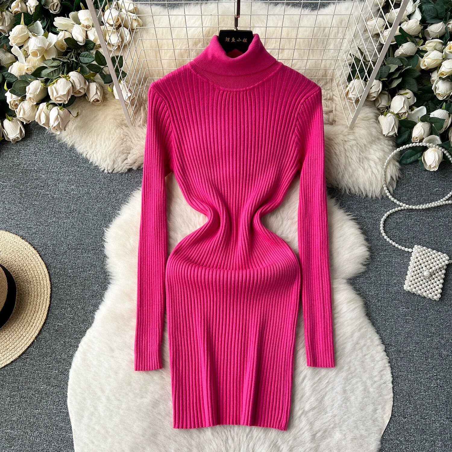 秋のハイネックニットドレス女性、コートとボトミングスカート弾性タイトスレッドセータードレス エラスティック 伸縮 オータム 秋物 lyxaj70437049141