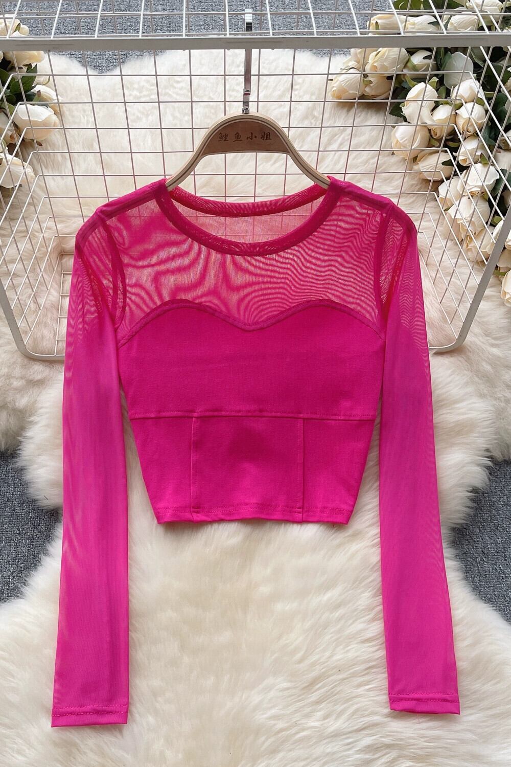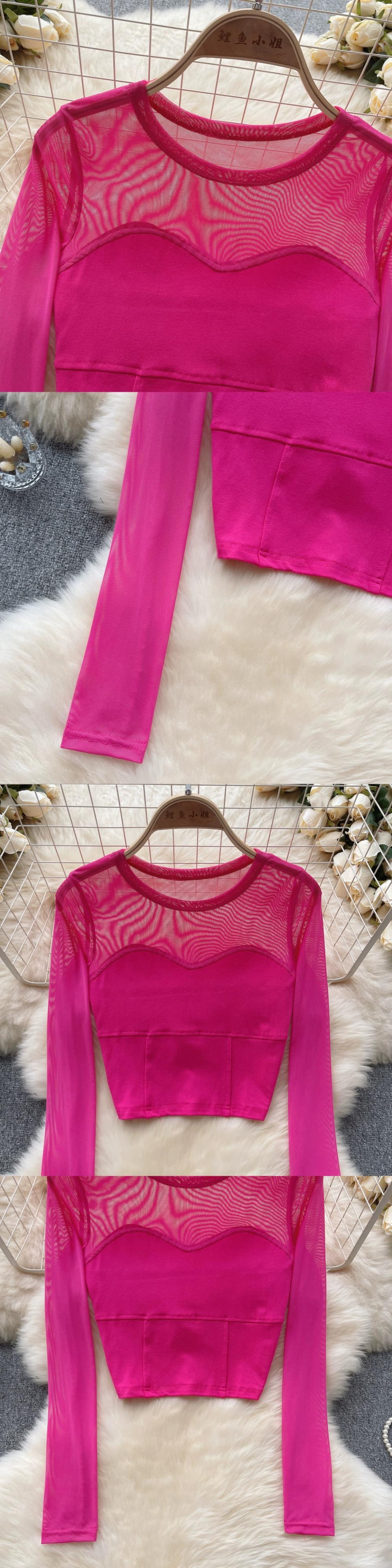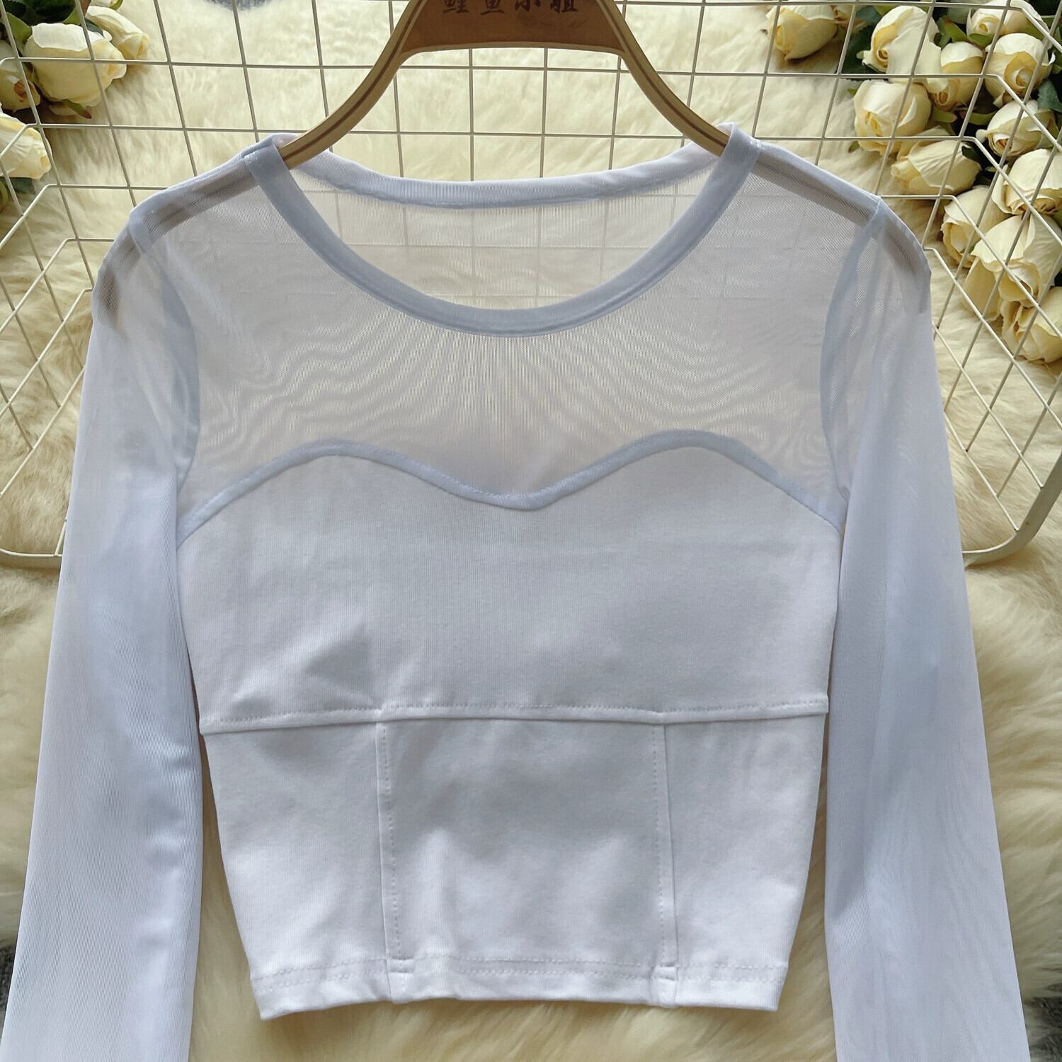 ヨーロッパとアメリカの純粋な欲望ネクタイスタイル長袖 Tシャツ女性秋メッシュスプライシングショートデザインニッチ気質トップトレンディ ロング オータム 秋物 ピュア ヨーロピアン lyxaj55128718410