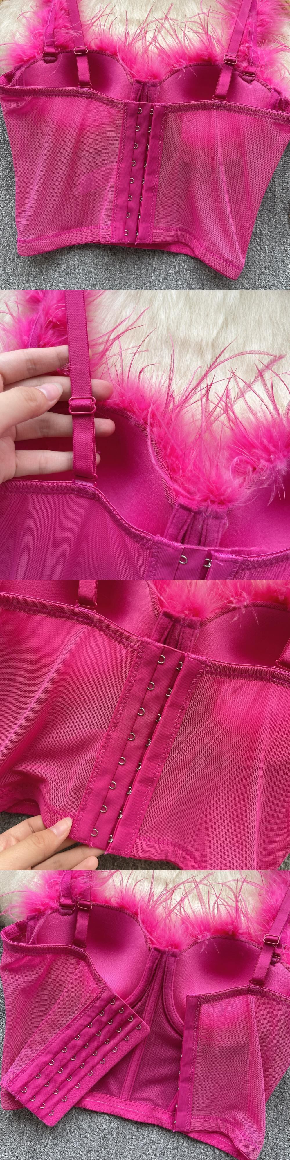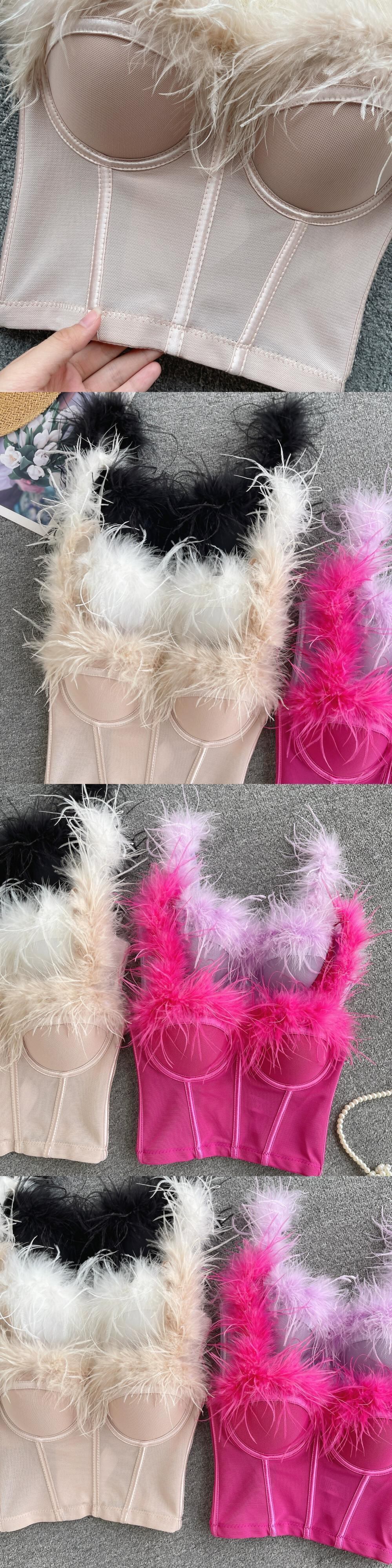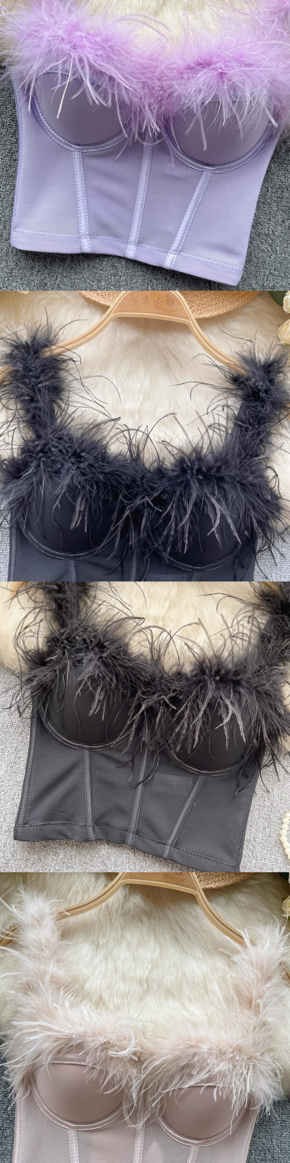 ヨーロッパとアメリカンスタイルのサスペンダーチューブトップ女性フェザーフィッシュボーンメッシュデザインニッチライト高級気質トレンディなトップ ヨーロピアン lyxaj51724303161