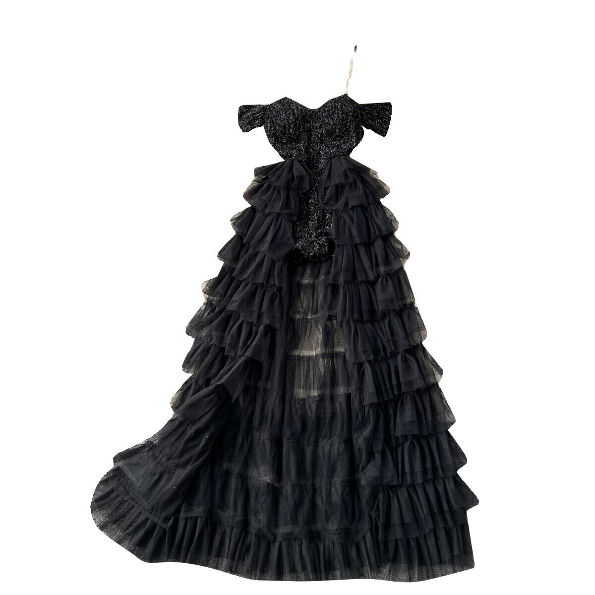 軽く豪華で反抗的なゴールドスタイルのハイエンドサスペンダージャンプスーツ、スパンコールスプライシングメッシュデザインのスーパーフェアリーロングスカート lyxaj47075502213