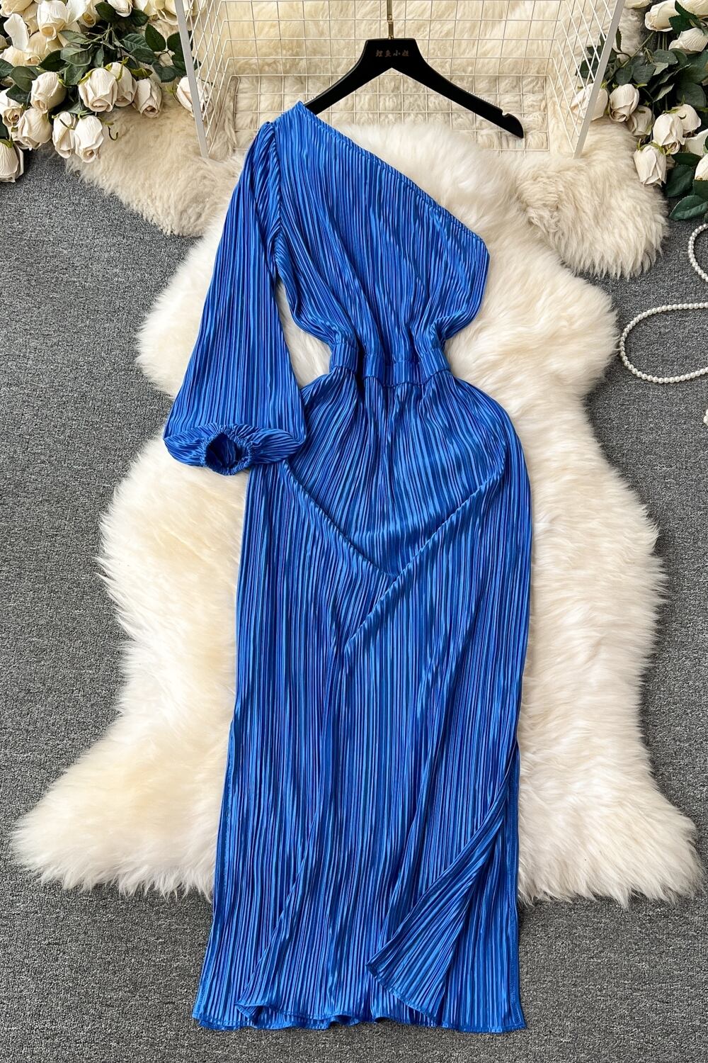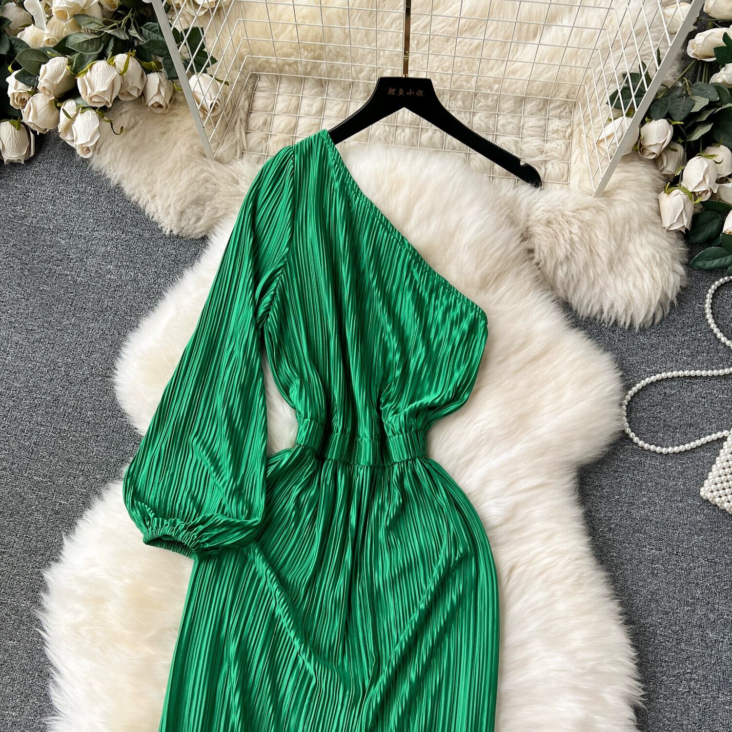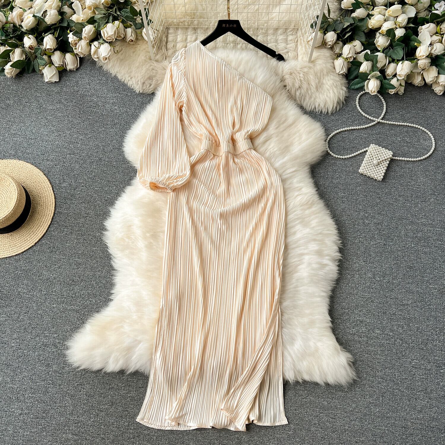 -エンドエレガントなパーティードレス、レディライクなスタイル、ハイエンド、なで肩、ウエスト、プリーツドレープドレス、トレンディ lyxaj44682875544