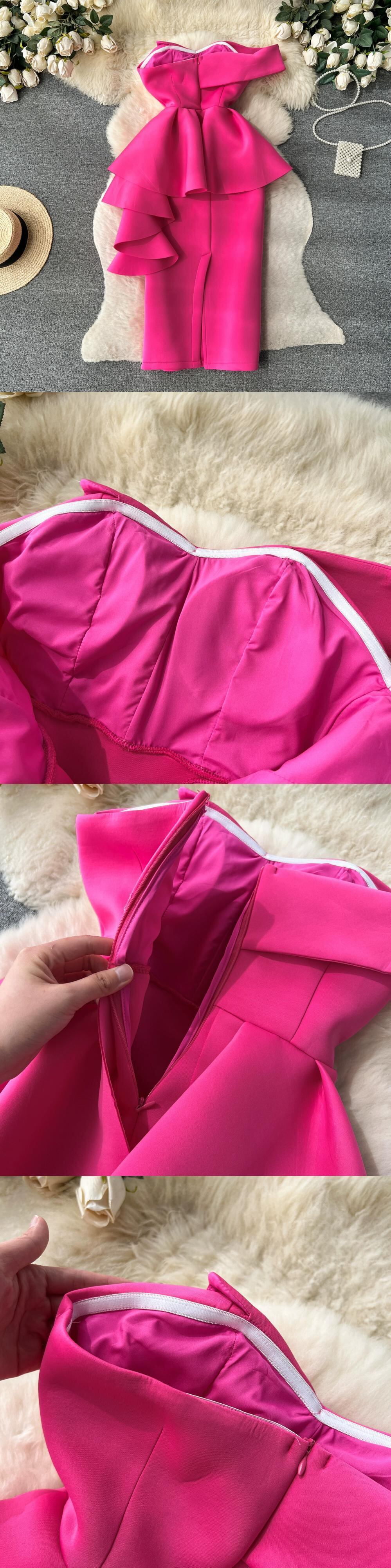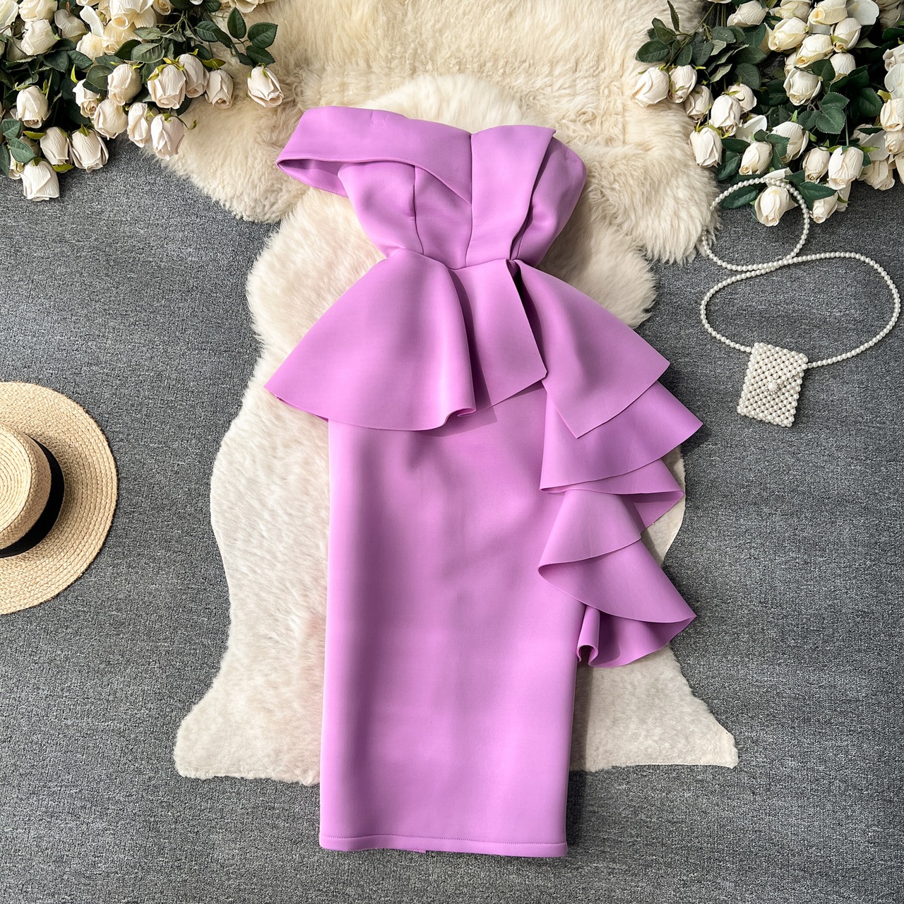 - 端的で絶妙なドレスの女性、高級な斜めの襟、オフショルダー、フリルのスリット、不規則なヒップハグドレス lyxaj24388738750