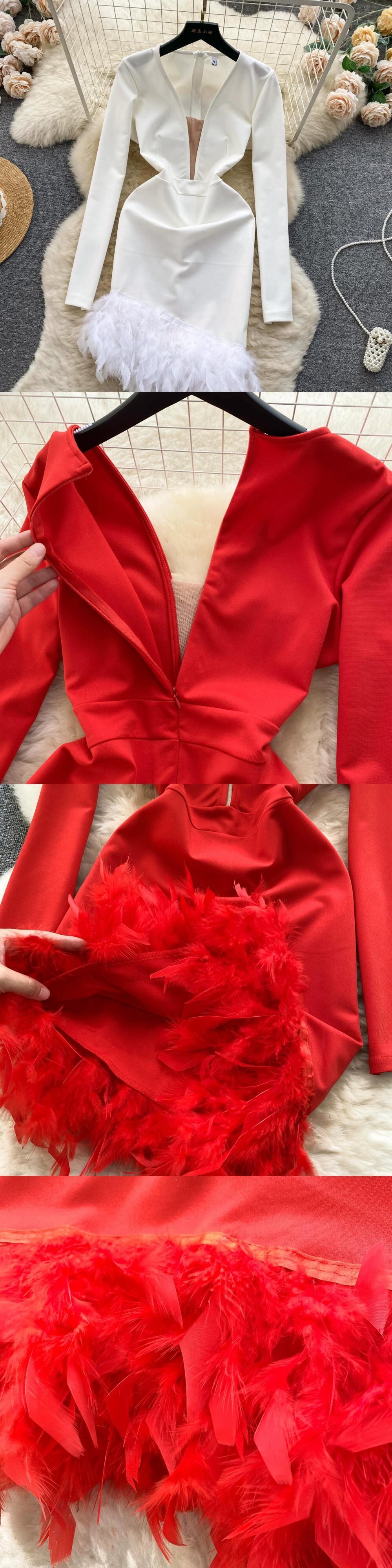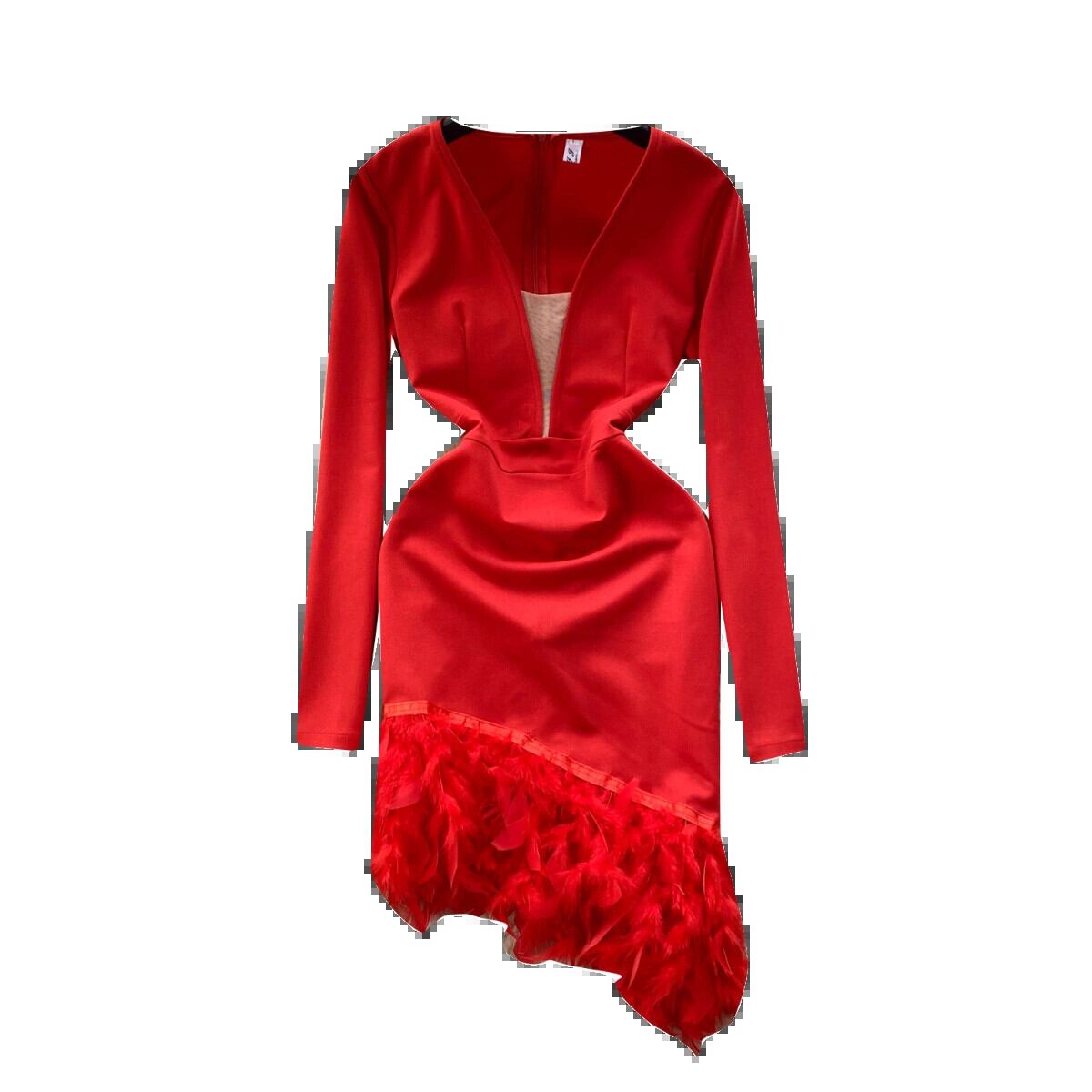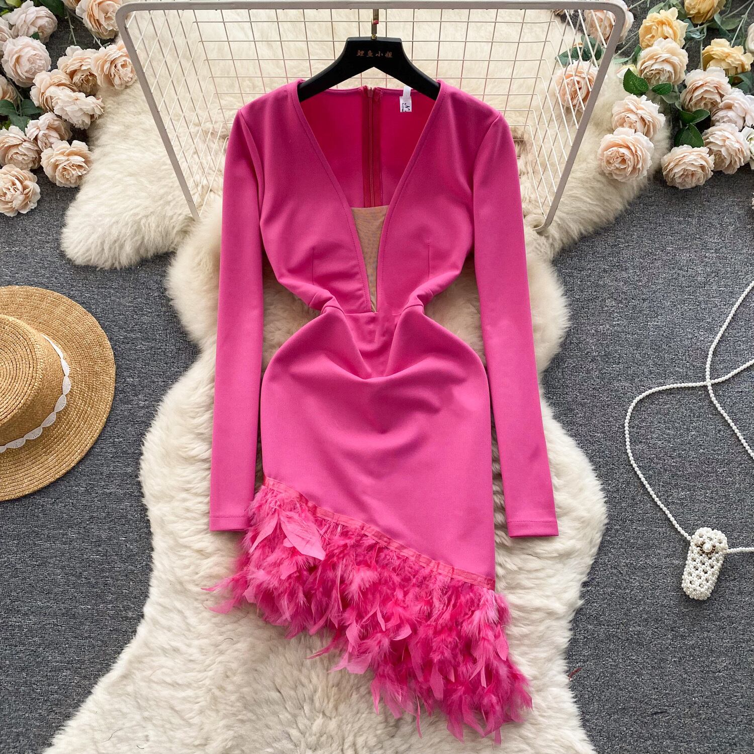 ヨーロッパとアメリカのイン衣装女性ハイエンドセレブセクシーな中空ウエストバッグお尻フェザースプライシング不規則なドレス ヨーロピアン lyxaj78212565648