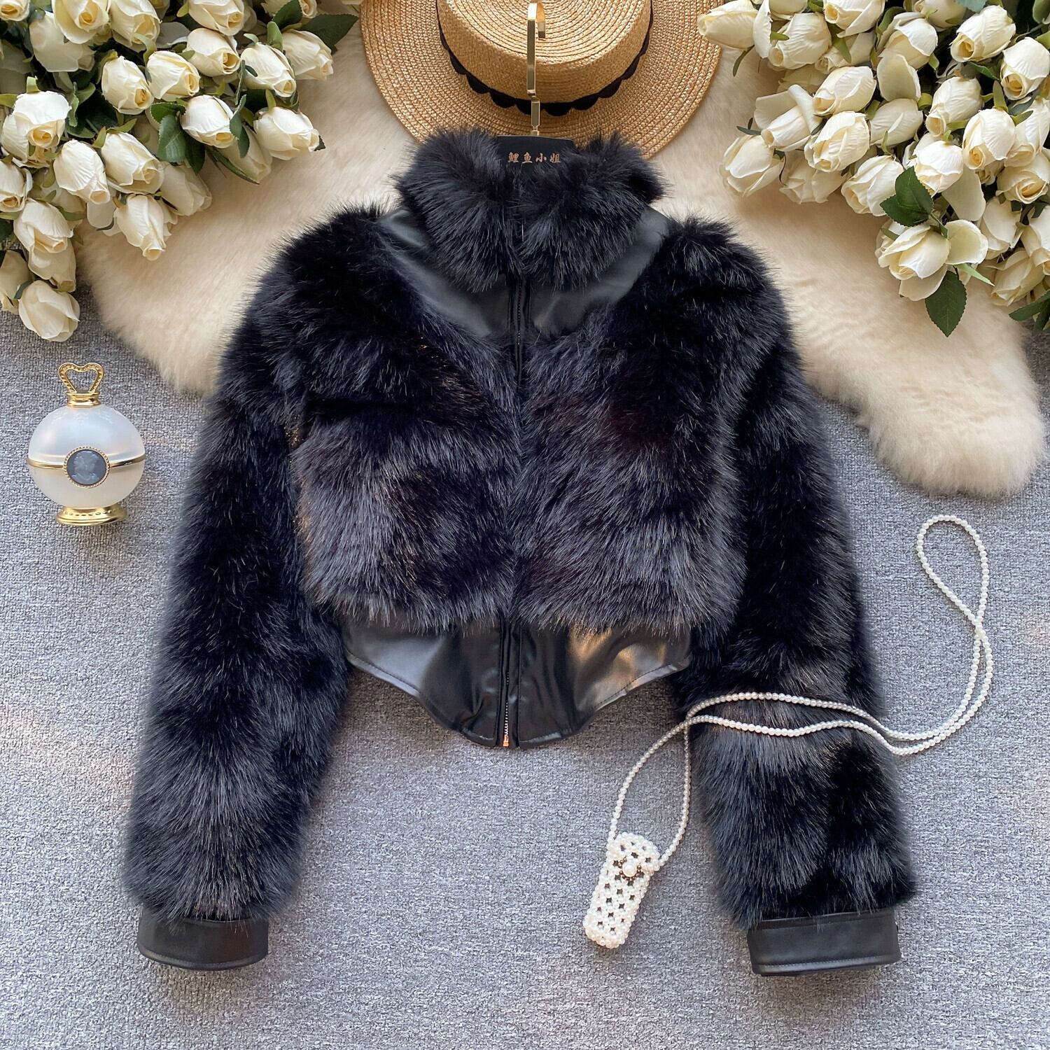 冬の新スタイルライト高級ゴールドスタイルハイエンド PU レザーぬいぐるみベルベットデザインニッチ純粋な欲望ネクタイショートジャケット女性 ウィンター 冬物 ピュア lyxaj69484317261