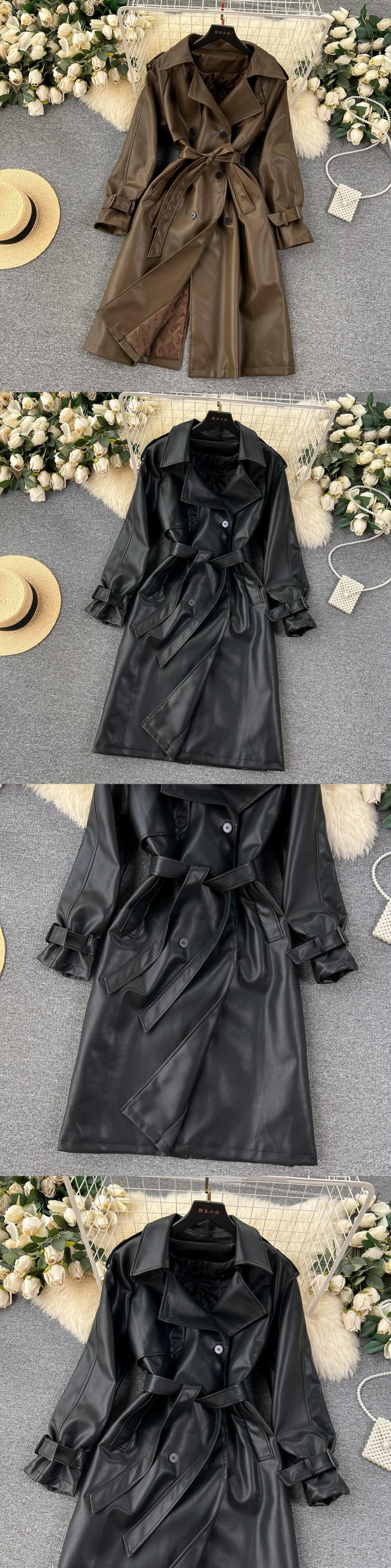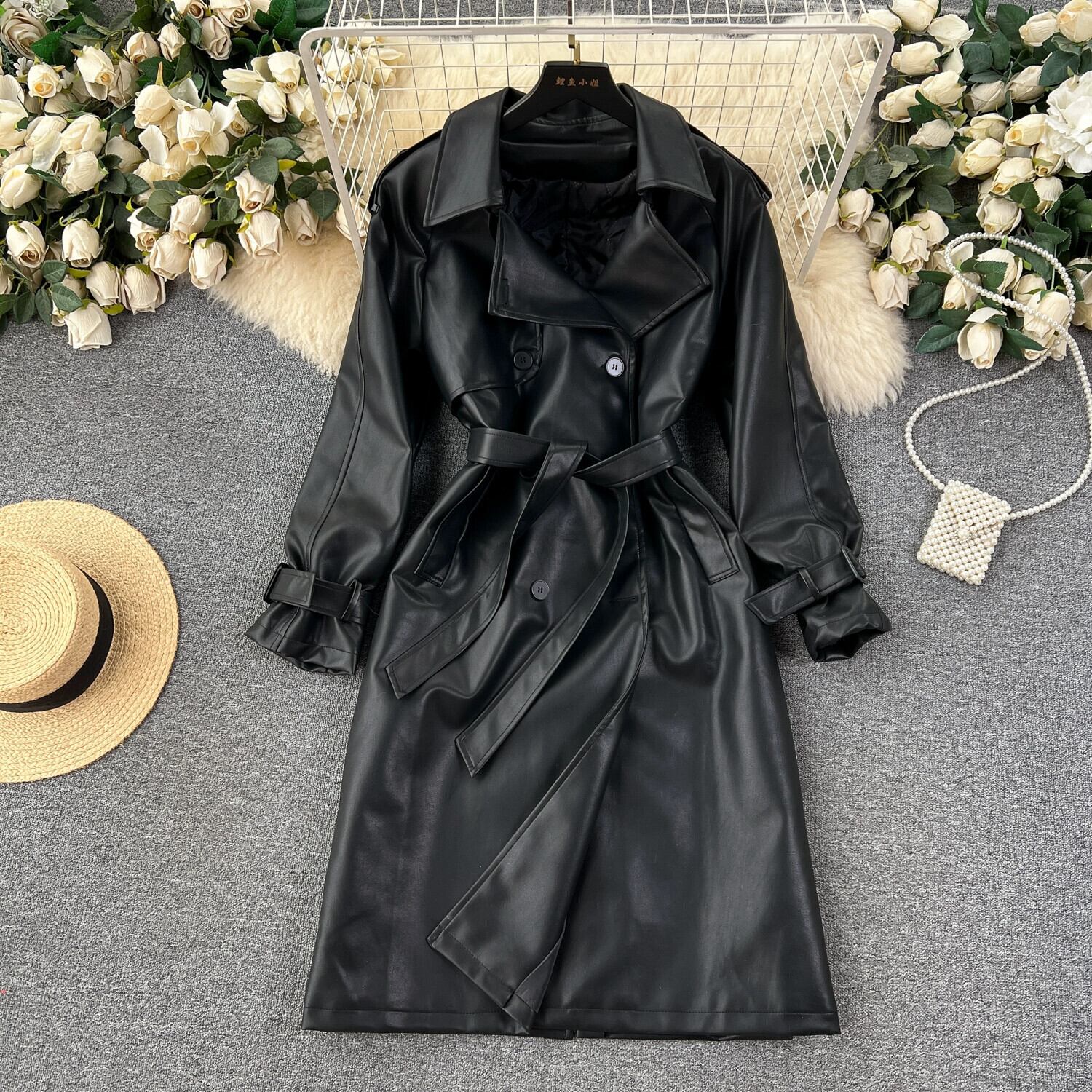 コールドスタイル Yujie ミドル丈レザージャケットの女性ヘップバーンスタイルのハイエンド感覚ルーズな大型バージョンアインスタイルの多目的コートトレンド lyxaj39359208076